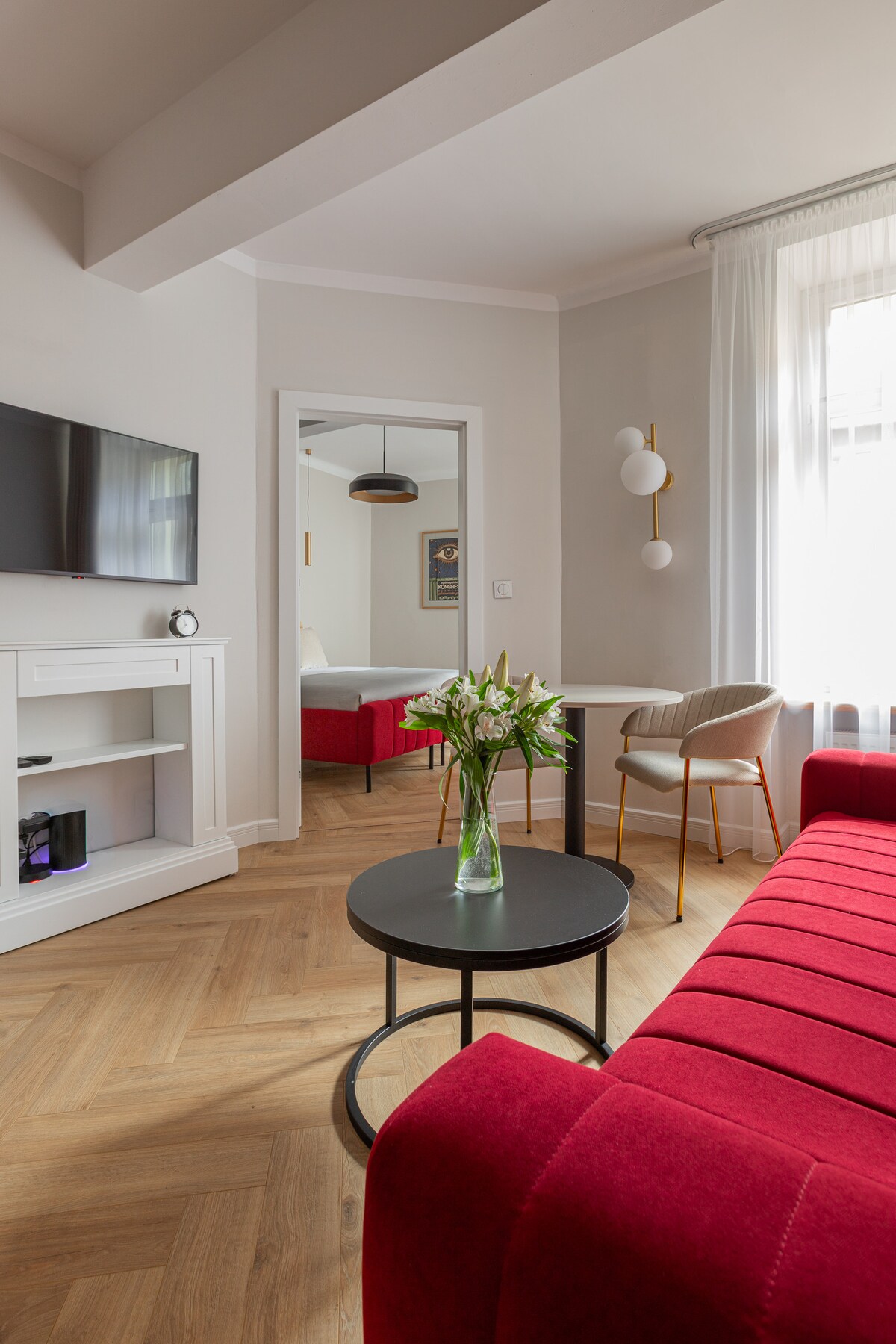 Krakovun Kazimierz rayonunun mərkəzində, Volnitsa Meydanının gözəl mənzərəsi olan, təkrarı olmayan, dəbli bir mənzil. İnteryer zərifliyi, tarixi və bədii xarakteri birləşdirir, bu da Elle Decoration jurnalı tərəfindən qiymətləndirilir. Yüksək keyfiyyətli döşəyi olan böyük, rahat çarpayı mükəmməl istirahət təmin edir, pəncərənin yanındakı cazibədar retro masa isə səhər yeməyi və ya iş üçün mükəmməl yerdir. Yerli bələdçilərlə işləyərək Auşvits, Veliçka Duz Mədəninə səfərlər və şəhər turları təklif edirik.