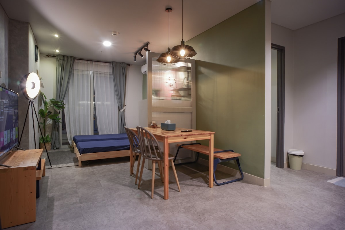 Surabayanın ən böyük ticarət mərkəzinə əlavə edilmiş rahat və dəbli studiya mənzili. Supermarketə, hər növ restorana və şəhərin ən uzanan kafesinə asan giriş imkanı. Bu məkanda qonaqlamanız üçün lazım olan hər şey var: böyük çarpayı, isti duş, Netflix, televizor, Wi-Fi dan soyuducusu. Daha əvvəl gələn və ya qonaqlayan başqa qonaq olmadığı təqdirdə giriş və çıxış vaxtı uyğunlaşan ola bilər ( erkən giriş saat 10-dan və ya 14.00 -a qədər gec çıxış). Əlavə çarpayı mövcuddur. Görüşərik 😁