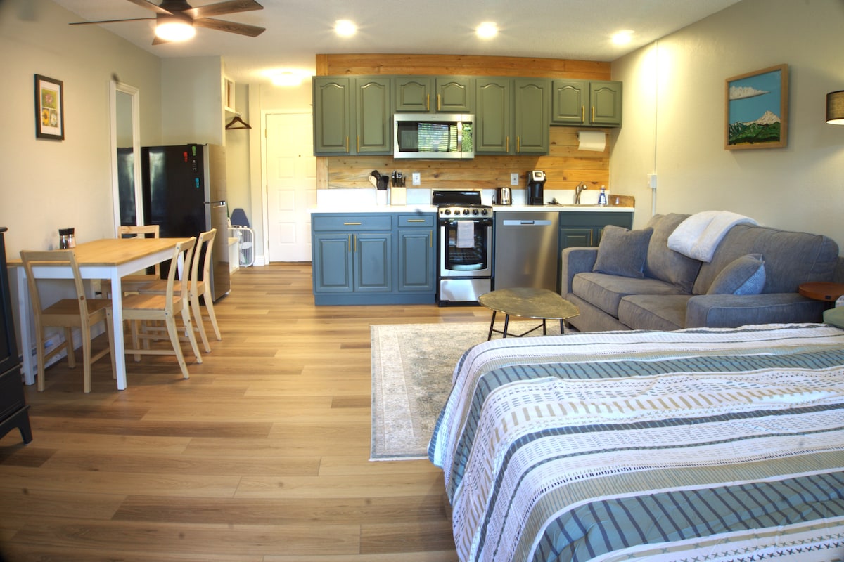 Yeni! Bu gözəl yenidən qurulmuş, torpaq səviyyəli studiyada dincəlin və dincəlin. Tam təchiz olunmuş mətbəx, daş buxarı, kraliça böyüklüyündə çarpayı və divan. Dağ mənzərəli böyük örtülü veranda! Ski Granby Ranch və ya Qış Parkı, Grand Lake, Hot Kükürd Sprinqs, Qayalı Dağ Milli Parkı və daha çoxunu ziyarət edin! At sürmək, Sleigh gəzintiləri, Tübinq, Qar motosikleti, Qayıqçılıq, Kayakinq, Avarçəkmə, Balıqçılıq, Qolf, Üzgüçülük. Hər şey buradadır. Giriş saat 16:00 -da, çıxış isə saat 10:00 -da olacaq.