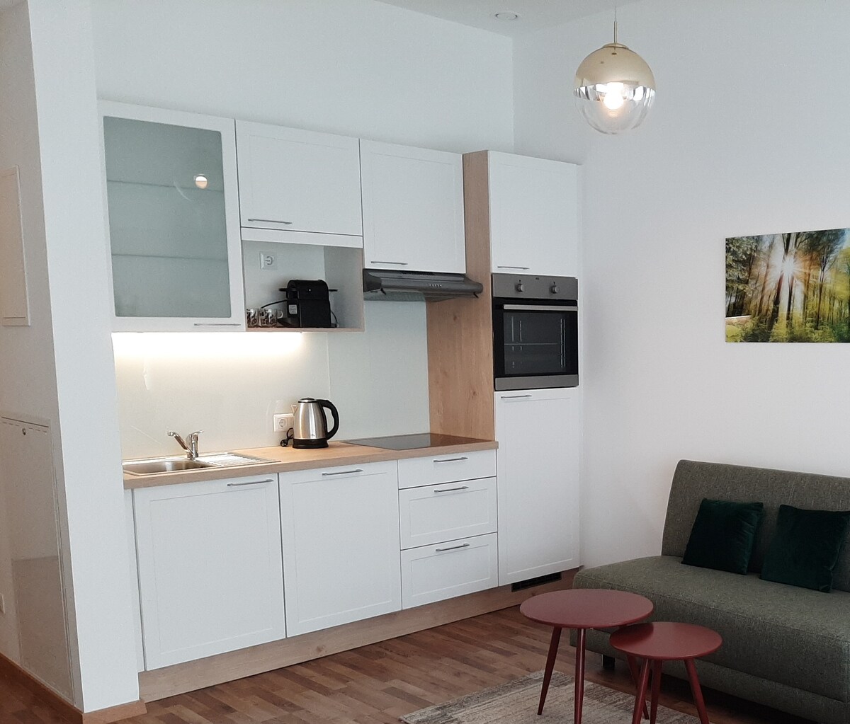 KÖHNƏ ŞƏHƏRƏ yaxın 1-ci mərtəbədə GÖZƏL Wienertor Mərkəzində yeni MƏNZİL. Supermarketin düz yanında hər şey asandır. İki böyük və ya iki böyük və uşaq üçün uyğundur. Bu gözəl mənzildə 38 m² yaşayış sahəsi və 17 m² terras var. Yüksək keyfiyyətli mebel və tam təchiz olunmuş mətbəx, Nespresso maşını, 55 "televizor, yüksək sürətli Wi-Fi və s. ilə tam təchiz edilmiş yaşayış / yataq otağı. Paltaryuyan maşın, duşlu geniş vanna otağı. Binada pulsuz parkinq, örtüyün altında velosiped dayanacağı.