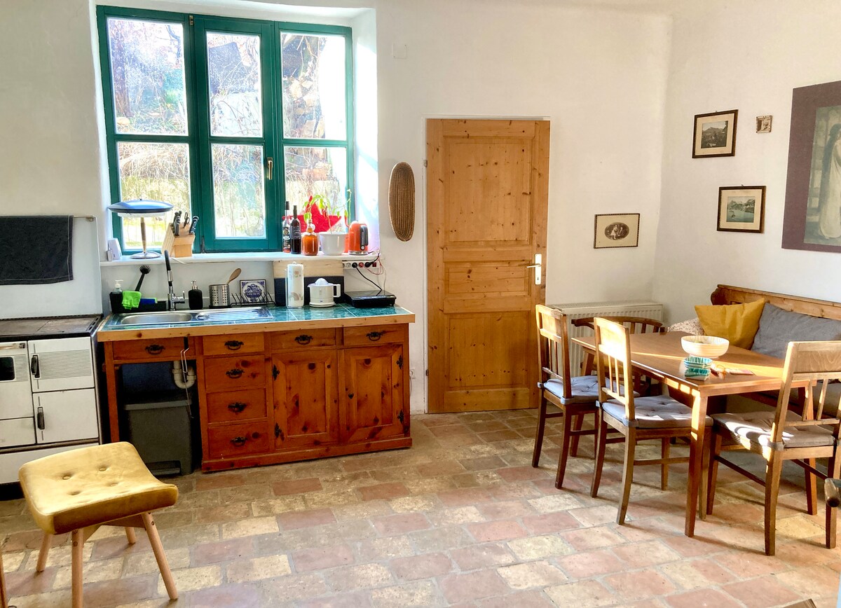 Köhnə, keçmiş ferma evimiz Burgschleinitz-də, orta əsrlərə aid su qalası, Romanesk kilsəsi, Qotik Karner və Eggenburg yaxınlığındakı meşə və şərab rayonu arasında çox sayda təbiət olan yaraşıqlı bir kənddə yerləşir. Motosiklet, e-bikes,kanoe, kayak, yanğın çuxuru, manqal, qum meydançası, stolüstü tennis və sauna. Və Jozefsbrot, bəlkə də Avstriyanın ən yaxşı çörəkləri kafesi ilə. Biz bunu səbirsizliklə gözləyirik! Susanne və Ernst
