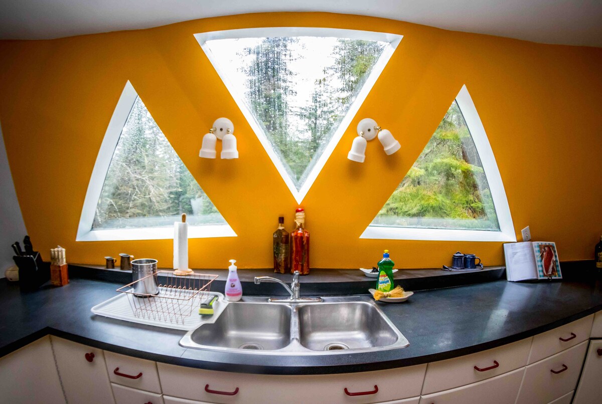 Beautiful dome house on the Salmo river. These three acres of forested property allow you to enjoy the quiet seclusion of nature, but remain only a thirteen minute drive to Nelson, and eight minutes from the Whitewater turn off (closer than Nelson). Return from a long day of skiing to warm up in the wood fired cast iron tub by the river or enjoy the six person electric hot tub with lounger and watch the Salmo river flow by. Or dry off by the woodstove and watch a movie on the 4K 100” projector