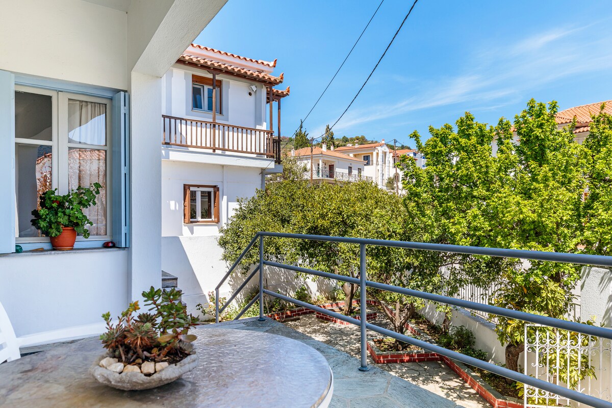Meqali Ammos çimərliyindən cəmi 30 metr məsafədə yerləşən füsunkar ikimərtəbəli binadakı əla təmirli 60 kvadratmetrlik mənzilimizə və Skiatosun mərkəzinə qısa 10 dəqiqəlik məsafədə yerləşən əla təmirli 60 kvadratmetrlik mənzilimizə xoş gəlmisiniz. Gəzinti məsafəsində canlı musiqi, fastfud seçimləri, supermarketlər və çimərlik barlarının olduğu müxtəlif restoran və tavernalar tapa bilərsiniz. Bundan əlavə, qayıqlar, avtomobillər və motosikletlər üçün yaxınlıqdakı icarə xidmətləri adanı araşdırmağı asanlaşdırır. Qonaqlamanız zamanı mükəmməl istirahət və macəra qarışığından zövq alın