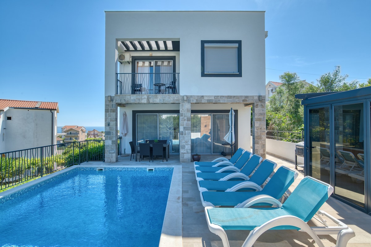 Dənizin, dağların və meşənin valehedici mənzərələri olan unikal, yeni tikilmiş təpəlik villanı kəşf edin. Valehedici çimərliklərdən və əla yerli restoranlardan cəmi 5 dəqiqə. Villada hər birinin öz hamamı, tam təchiz olunmuş mətbəxi və yemək sahəsi olan 3 AYRI mənzil var. Rahat damlı salondan, rahat günəş yataqları olan geniş hovuzdan və maksimum 3 avtomobil üçün ayrıca parkinqdən zövq alın. Rahatlıq, rahatlıq və təbii gözəllik axtaran ailələr, qruplar və ya cütlüklər üçün idealdır.
