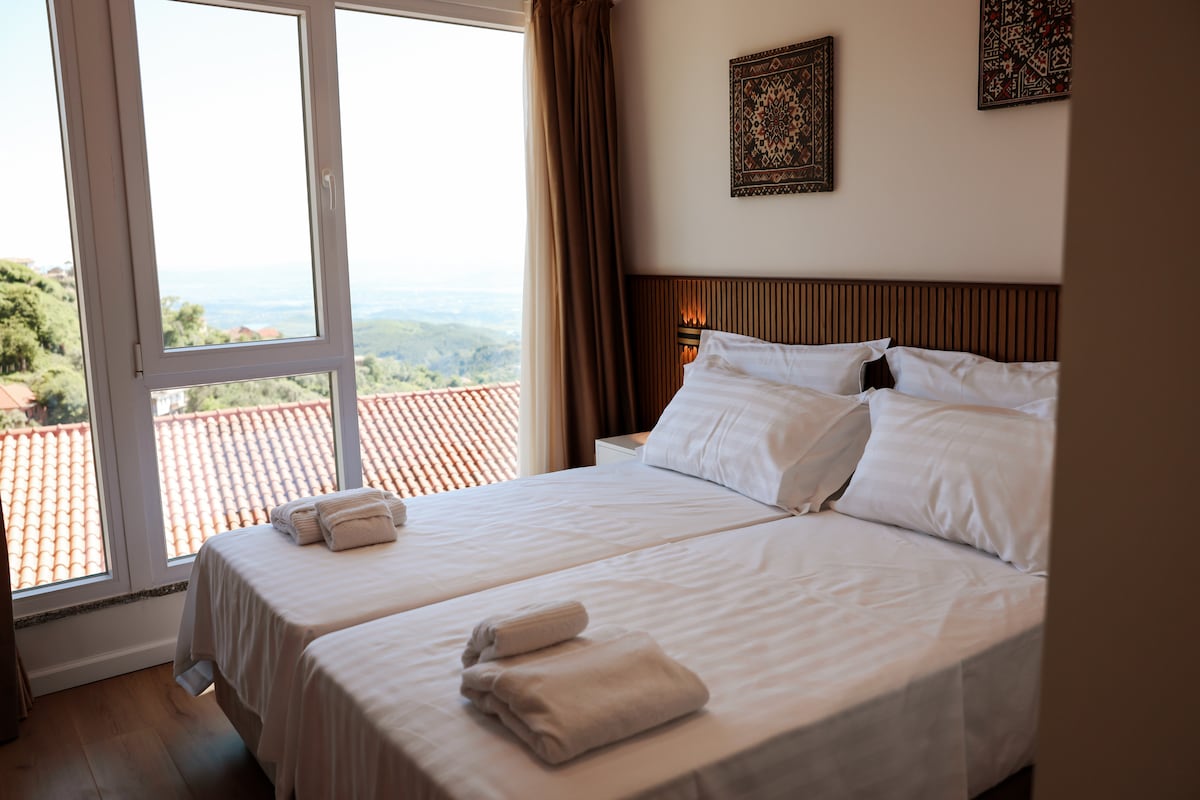 Kruja Qalası və Köhnə Bazar yaxınlığındakı lüks penthausumuza xoş gəlmisiniz! 5-ci mərtəbədə (lift yoxdur) 3 yataq otağı, 2 divan-çarpayı, mətbəx, Wi-Fi, qonaq otağında kondisioner və əsas yataq otağı olan 8 qonağa uyğundur. Digər iki yataq otağı pəncərələri açıq və ağcaqanad ekranları ilə sərin qalır - Kondisionerdən daha yaxşıdır! Mağazaların, kafelərin və pulsuz ictimai parkinqin gözəl mənzərələrindən, addımlarından zövq alın. Ailələr və ya qruplar üçün kartlar və Cenga kimi masaüstü oyunlar daxildir. Dincəlmək və ya Krujanın qəlbini araşdırmaq üçün ideal bazanız!