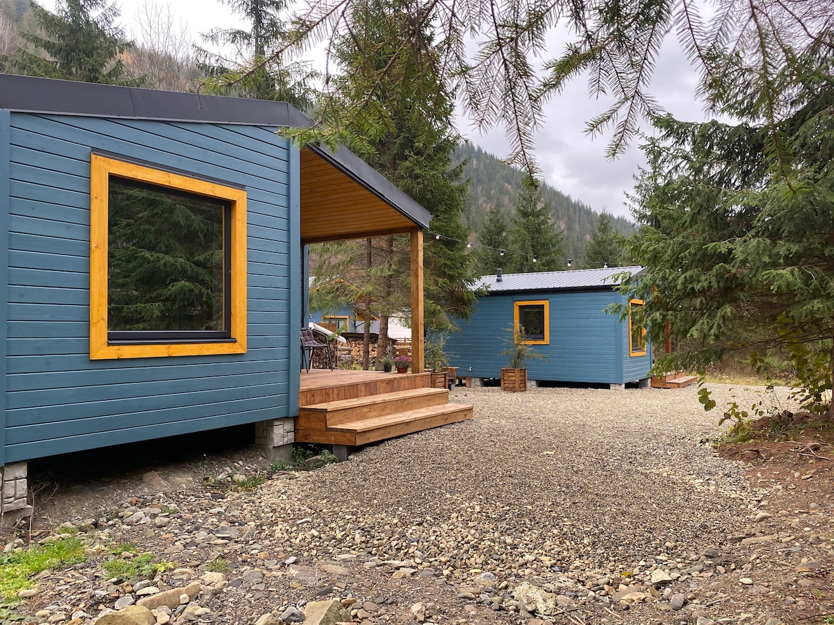 Mənzərəli ərazidə yerləşən taxta terraslı rahat mənzillər. Ətrafda ağaclar, qazon və istirahət zonası olan geniş yaşıl ərazi var. Dağ mənzərəsi atmosferə sükunət və təbiətlə ahəngdar atmosfer bəxş edir. Bura Karpat bölgəsinin gözəlliyi ilə birləşən rahatlıq axtaranlar üçün ideal yerdir. Ailəvi istirahət, görüşlər və ya açıq havada romantik axşamlar üçün uygundur. Terras və yemək üçün təchiz olunmuş zona təbiətdə rahat vaxt keçirmək üçün bütün şəraiti yaradır.