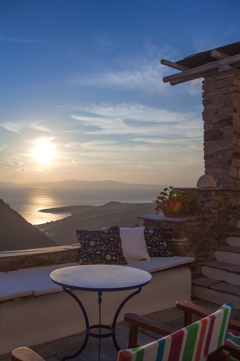 Ktikados kəndinin kənarında yerləşən unikal yenilənmiş ənənəvi Kiklad evinə daxil olun. Çantalarınızı atın, verandaya aparan qoşa qapıları süpürün və dağ və dənizin amfiteatr mənzərəsinə yerləşin. Əmlak freskalı yemək, istirahət və misilsiz qürub mənzərələri üçün ideal bir sıra terraslardan ibarətdir. Gün ərzində adaya xas olan yerli qarğaların uçmasını və günəş batdıqdan sonra vadinin qoyunlarından aylı ziyarətləri gözləyə bilərsiniz.