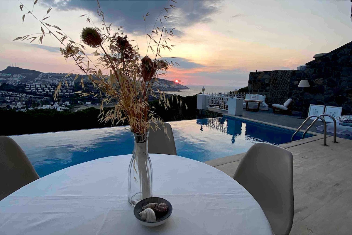 Kücükbükdə Privat Hovuzu ilə Tam Dəniz Mənzərəsi⭐️