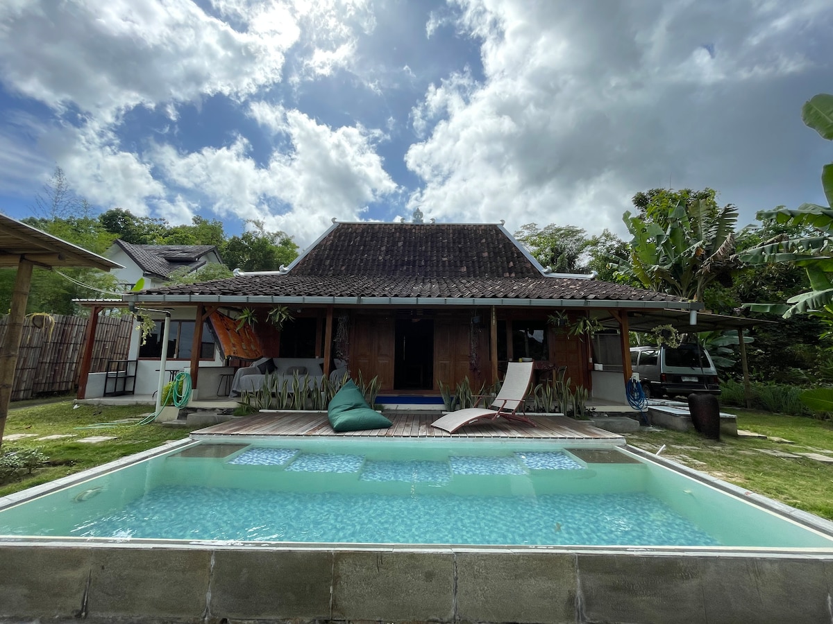 Traditional house and infiniti pool with a view for gathering, hiking & cycling Villa Velo 1 is a traditional wooden house (Limasan) renovated in 2025. Its elevated location offers a sublime panoramic view on cascading paddy fields and, early morning, the sunrise behind the Merapi volcano and the Merbabu mountain is spectacular.