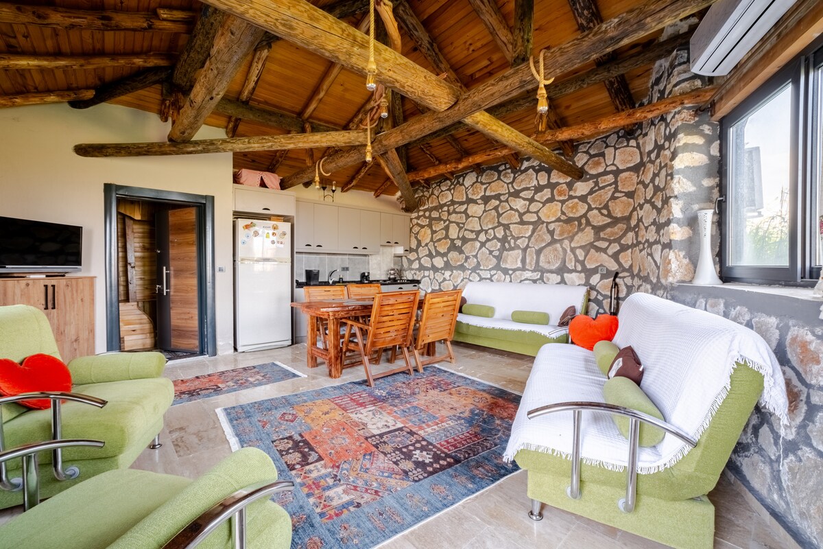 TEK ODA DOĞAL TAŞ EVDİR.20 M KARE BÜYÜKLÜĞÜNDEDİR.İÇERİSİNDE BANYO WC VE MUTFAK VARDIR.ÖZENLE SİZLER İÇİN DEKORE EDİLİP PLANLANLANMIŞTIR.BÜTÜN EŞYALAR HENÜZ ÇOK YENİ ALINMIŞTIR.1 ADET ÇİFT KİŞİLİK YATAK VE BİR ADET KANEPE VARDIR.MUTFAĞINDA YEMEK YAPILABİLMESİ İÇİN ELEKTRİKLİ OCAK,TEZGAH ALTI BUZDOLABI,ÇAMAŞIR MAKİNESİ,ÇAY MAKİNESİ,KETTLE, VS HERŞEY MEVCUTTUR,KLİMA SİSTEMİ İHTİYAÇ OLMASADA MEVCUTTUR.