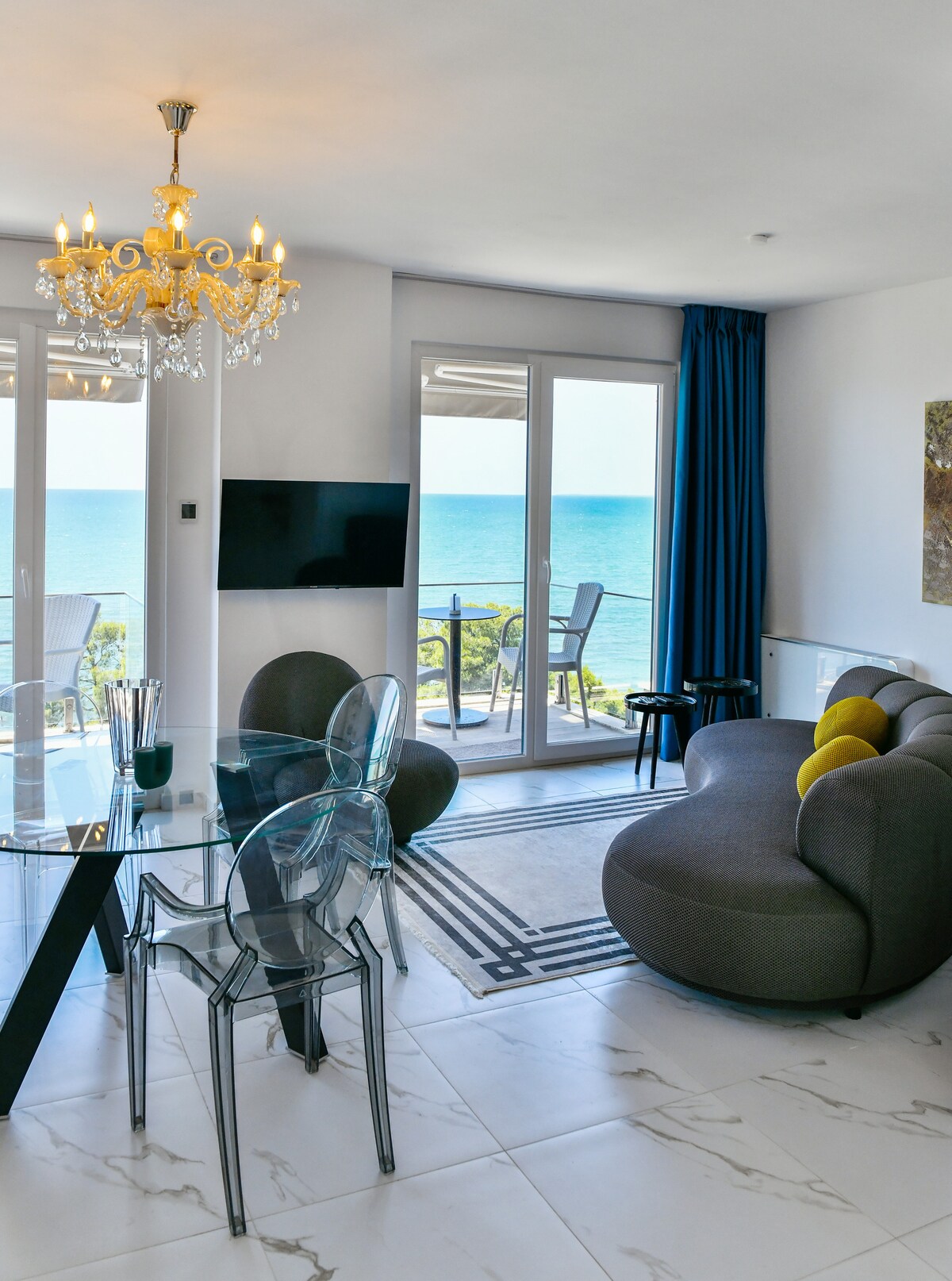 Ailə və dostluq xoşbəxtliyini qeyd etmək üçün mükəmməl yer. Dalğaları seyr edərkən və onların sakitləşdirici səslərini dinləyərkən səhər və ya axşam yeməyindən zövq alın. Növbəti sərgüzəştinizə hazır olan əlinizdə soyudulmuş şampan fleytası ilə gün batımını seyr edin. Möhtəşəm, klassik və mükəmməl olan bu dəbli mənzil ən yaxşı qonaqlama yeri təklif edir.