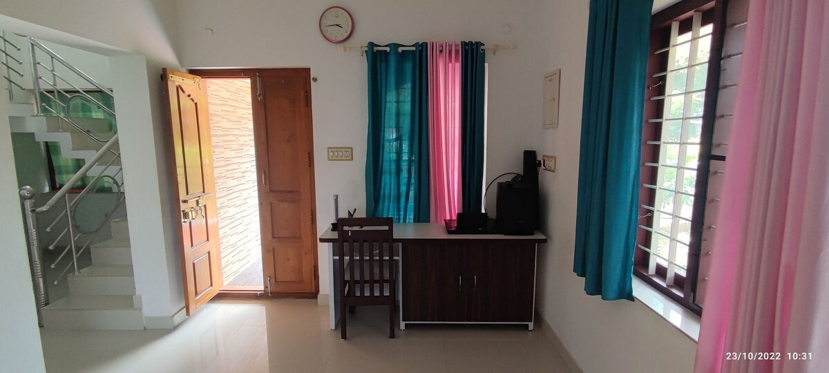 Rahatlıq və zərifliyin rahatlıq və qonaqpərvərliyə cavab verdiyi Palakkaddakı füsunkar Airbnb-yə xoş gəlmisiniz. İki geniş eyvan səhər qəhvəsindən zövq almaq və ya axşam yeməyində çimmək üçün ideal olan panoramik mənzərələr təklif edir. Son dərəcə rahatlığı üçün hər biri müasir imkanlar və əlavə hamam otaqları ilə təchiz edilmiş rahat yataq otaqlarımıza çəkilin. Mərkəzdə yerləşən Airbnb-miz Palakkadın görməli yerlərinə asan giriş imkanı təmin edir Əlavə ödənişlə ev yeməyi təklif edirik
