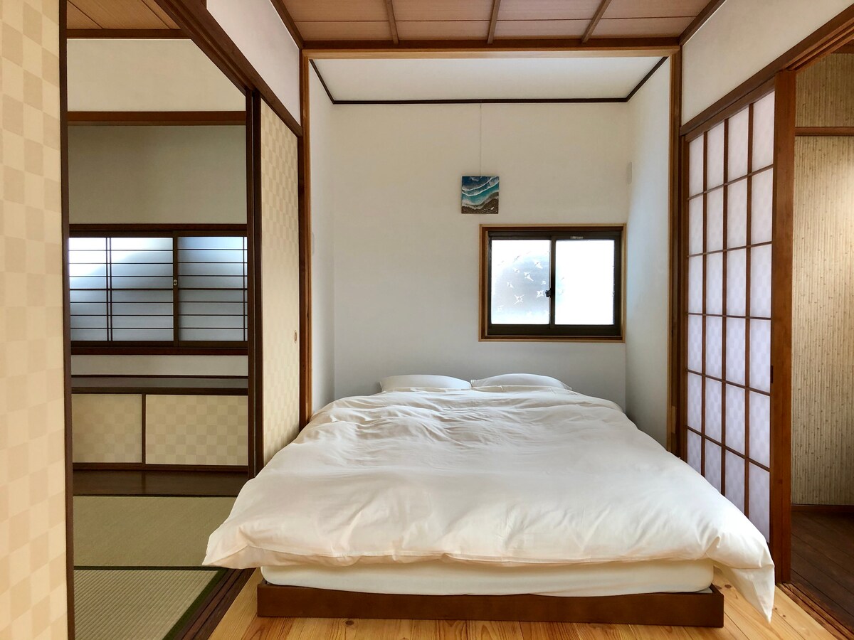 Ayrıca qonaqlama yeri kimi kiçik yapon evləri təklif edirik.Yapon üslublu otaqda xallı otaq olduğu üçün çarpayı yoxdur.Təxminən 3 nəfərlik futonda yatmaq kifayət qədər böyükdür.Burada gözəl hamam otağı və qədim Goemon hamamının yenidən qurulması olan kiçik mətbəx də var.İeura Limanından təxminən 10 dəqiqəlik məsafədədir.Qanunla pasportunuzun və ya şəxsiyyətinizi təsdiq edən sənədin surətini təqdim etməyinizi xahiş edəcəyik. ☆Əlaqə saxlaya bilmirsinizsə, bron etməyin. Yaponiya qanunu Airbnb ev sahiblərindən bütün (URL gizli) istisnalar üçün pasportların surətini saxlamağı tələb edir. Teşima adasında Kiçik Ev. Ieura körfəzindən 10 dəq. məsafədə. Yapon stye otağını 3 futonla təmin edirik. Çarpayı yoxdur. Sizinlə əlaqə saxlamaq mümkün ☆deyilsə, bron etməyin.