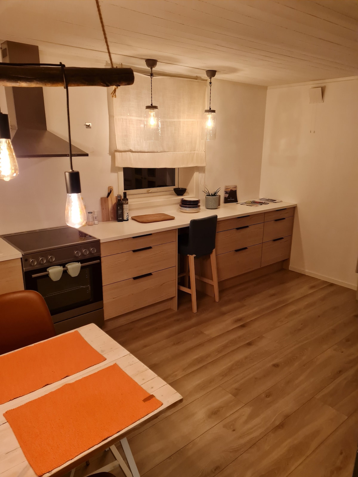 Böyük pəncərədə oturub səhər qəhvənizi içərək rom vadisi dağlarını öyrənərkən çöldə meşədə oxuyan quşları dinləyin. Evcik mərkəzdə, lakin İsfjordenin mərkəzindəki meşənin kənarında yerləşir. Qapıdan bayıra çıxın və Romsdalenin ən məşhur dağlarından bəzilərini gəzin. Və ya bir gün əvvəl tərk etdiyiniz Romsdalseggenə baxaraq divanda əyləşin. Evcikdə kiçik və funksional təchiz olunmuş mənzil mətbəxi (soyuducu və iki isti boşqab) var.
