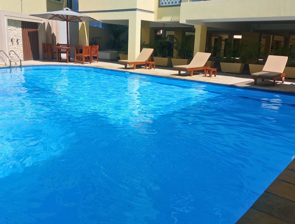 Located on the edge of Mombasa on the silver sands of Bamburi Beach. My apartment ( Studio) is a unit in a 5 star Apartment Complex featuring an outdoor swimming pool and a terrace facing the ocean. The unit is on the 3rd Floor accesible by a Lift and Staircase. Its self catering and comes with air condition, a flat-screen TV, Balcony, fully equipped kitchenette etc. Onsite 5* restaurant, bar & fitness center Ideal for couples, solo adventurers, business travelers, and families (kids).