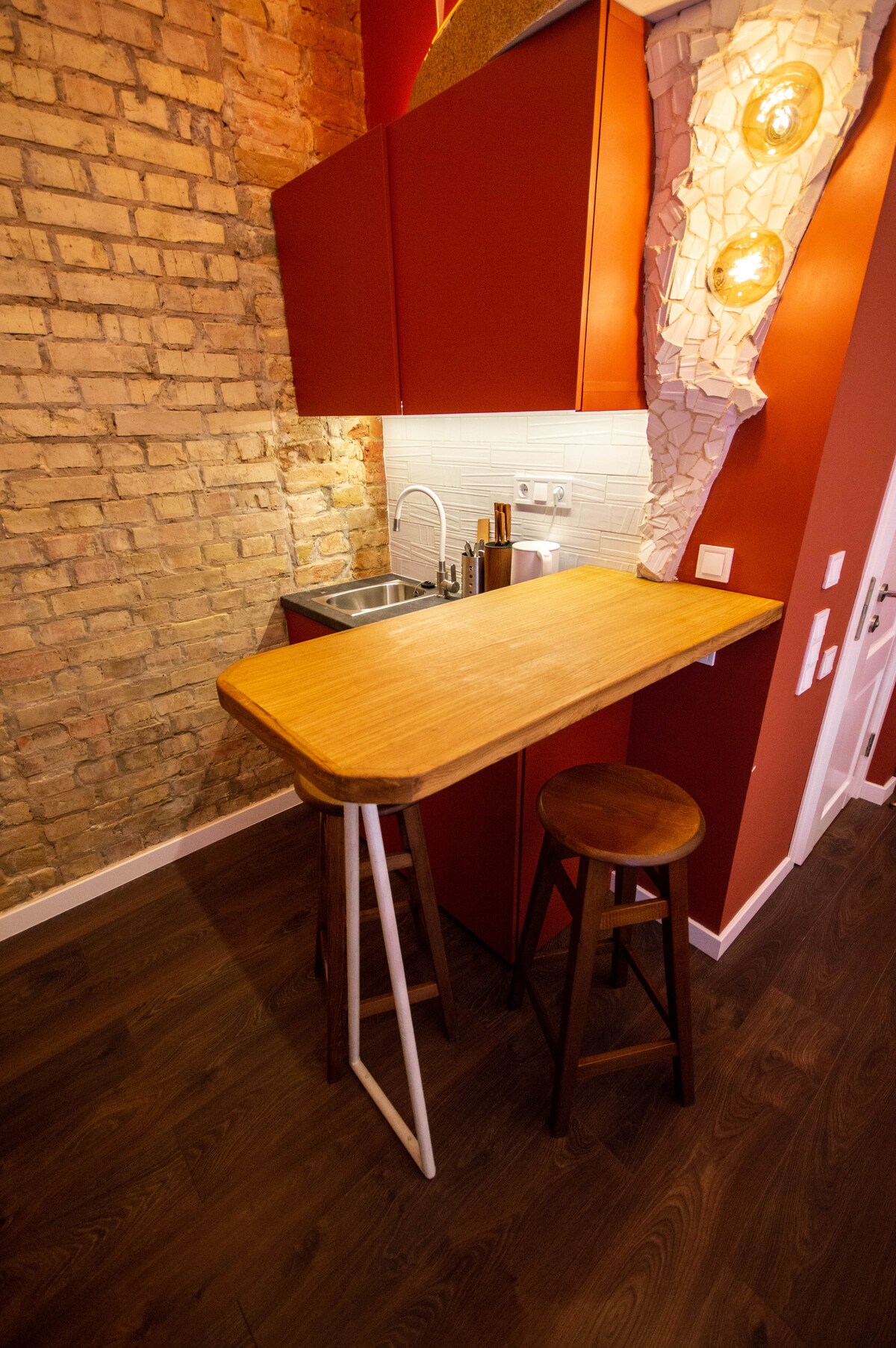 Məkan yenidir. Gənc modelyer tərəfindən dizayn edilib. Hər şey lüks otel süitası kimi dizayn edilib. Podiumlu böyük çarpayı, rahat divan, havada asılmış xüsusi stul. Mətbəxdə romantik şam yeməyi bişirmək və dincəlmək üçün lazım olan hər şey var. Məkan təhlükəsiz və etibarlıdır, aşağısında qapıçı var. Metro yaxınlıqdadır və ya Uber-i götürün və 7 dəqiqə ərzində mərkəzdə olun. Mərkəzə Uber qiyməti vaxtdan asılı olaraq 3-5 ABŞ dollarıdır.