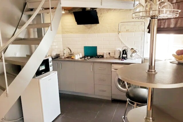 Rahat, komfortlu iki səviyyəli loft studiyası 1917-ci ildə tikilmiş, Kiyev mərkəzində, Opera Teatrı və Xreşatık küçəsinin yaxınlığında yerləşən tarixi binanın 4-cü mərtəbəsində yerləşir. "Universitet" metro stansiyası 5 dəqiqəlik piyada məsafədədir. Bu mənzil 6 otaqlı kiçik bir apart-otelin bir hissəsidir. İçəridə qatlanan divan və mezzanin üzərində 2 çarpayı üçün yüksək keyfiyyətli döşək var. Studiya mənzildə kiçik mətbəx və ehtiyacınız olan hər şeylə birlikdə öz hamamınız var.