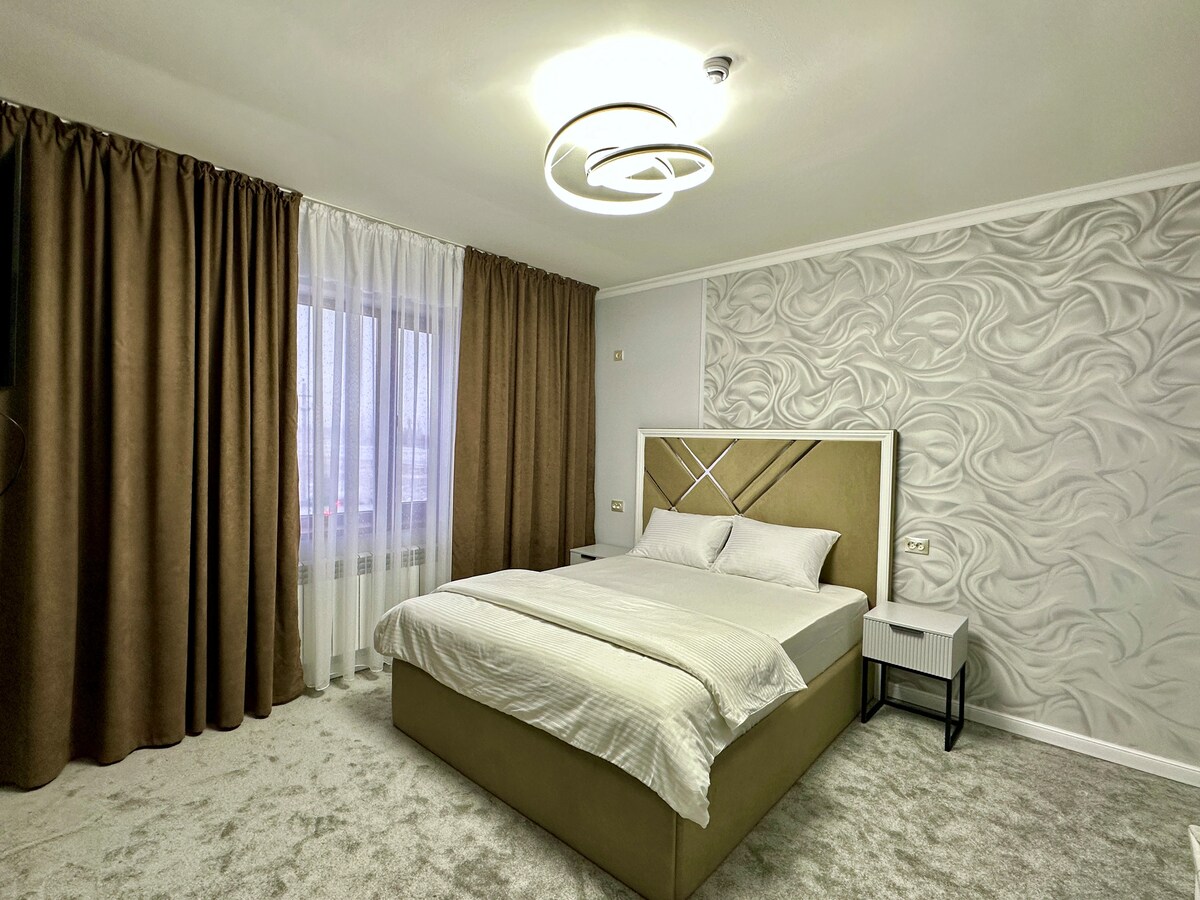 Mərkəzi meydanın yanında yerləşən yaşayış kompleksində rahat 2 otaqlı YENİ mənzil. Bütün mebellər, santexnika, avadanlıqlar yenidir. İvi kanallarına, Kinopoisk abunəliyi olan 65 düymlük Smart-tv. Mənzil təmiz və qoxusuzdur. Mənzilin hər bir küncünə hər qonaqdan sonra baxılır. Su filtri var. Təmizliyə 100% zəmanət veririk! Mənzildə siqaret çəkmək qəti qadağandır! - 10 000 Tq təhlükəsizlik üçün geri ödənilə bilən depozit var.