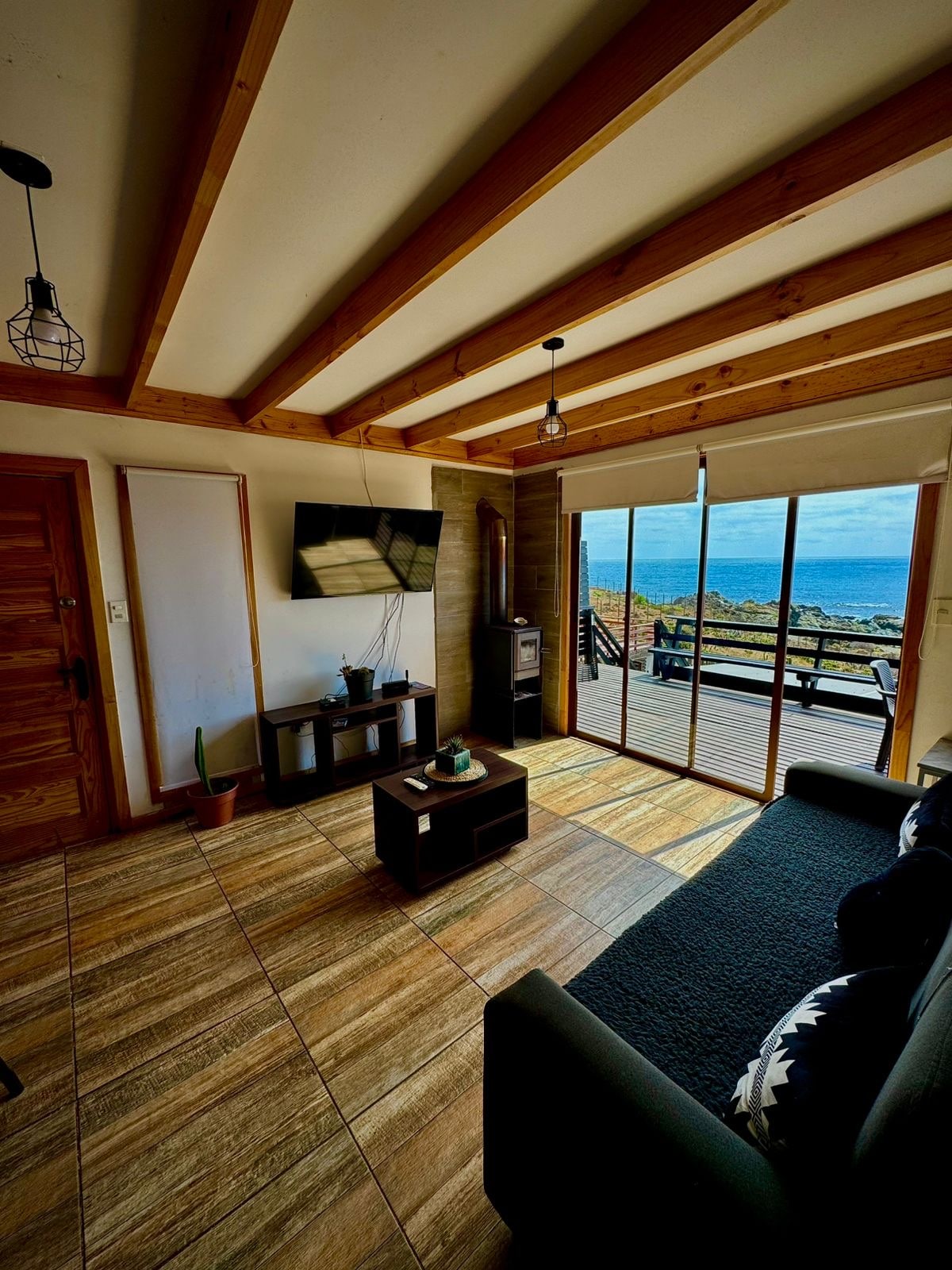 Relájate junto con tus amigos o familia en esta acogedora cabaña de aspecto rústico sofisticado ,con abundante naturaleza y vista a la bahía de Pichidangui. Dos habitaciones, ambas con cama de 2 plazas, una de ellas con baño en suite. Isla- comedor, cocina abierta, con refrigerador, microondas, cocina a gas con horno incluido y utensilios , en general para 6 personas. El living con sillón de 3 cuerpos y 2 sitiales e internet con antena Starlink y TV HD4k de 50”. Estufa Bosca a pellet.