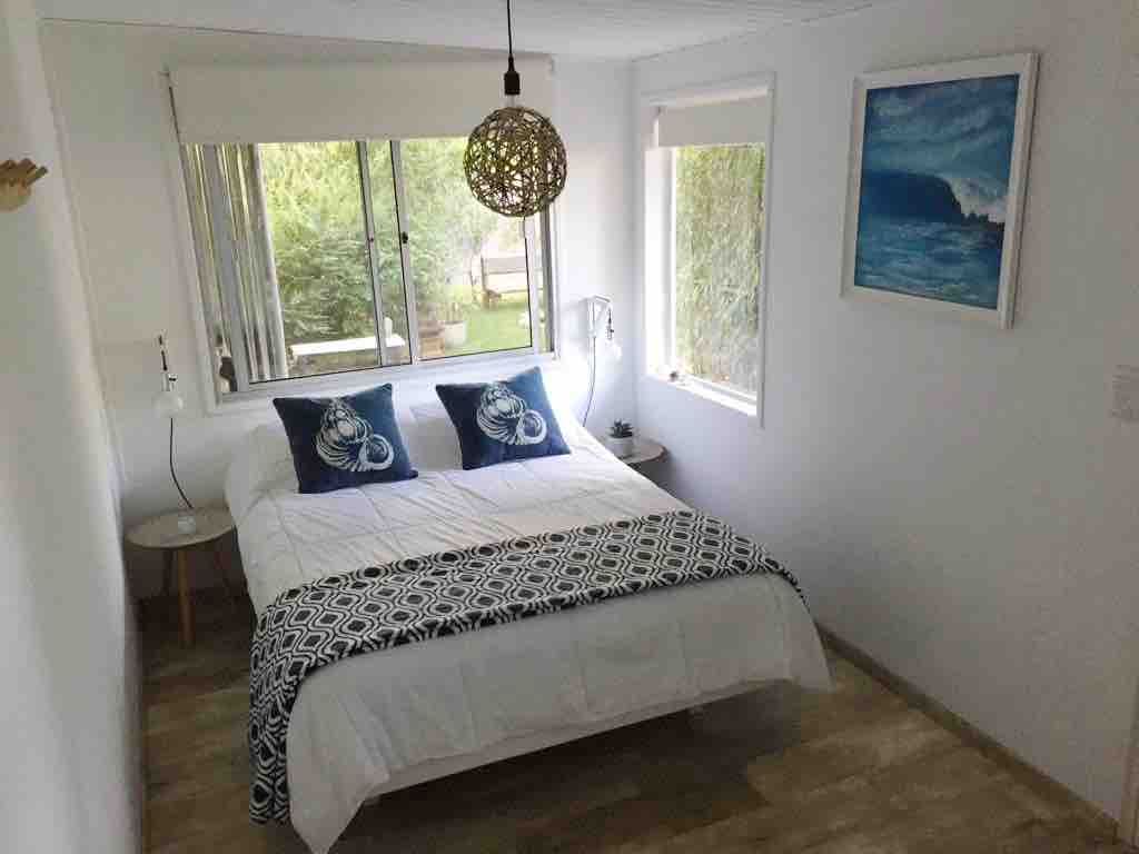 "Viento Azul" is a small house located in the La Barra area, 10 km from Punta del Este. Check-in 3:00 pm / Check-out - 12:00 pm Sleeps 3. Includes linens (sheets and towels), hairdryer, liquid soap, and pH balance. Fully equipped kitchen Living-dining room (cable TV, Netflix, 12 BTU air conditioning, sofa bed, 5G Wi-Fi) Ensuite bedroom: Queen-sized box spring, 12 BTU air conditioning, cable TV, Netflix, and safe. BBQ area with table and chairs. Large green garden.