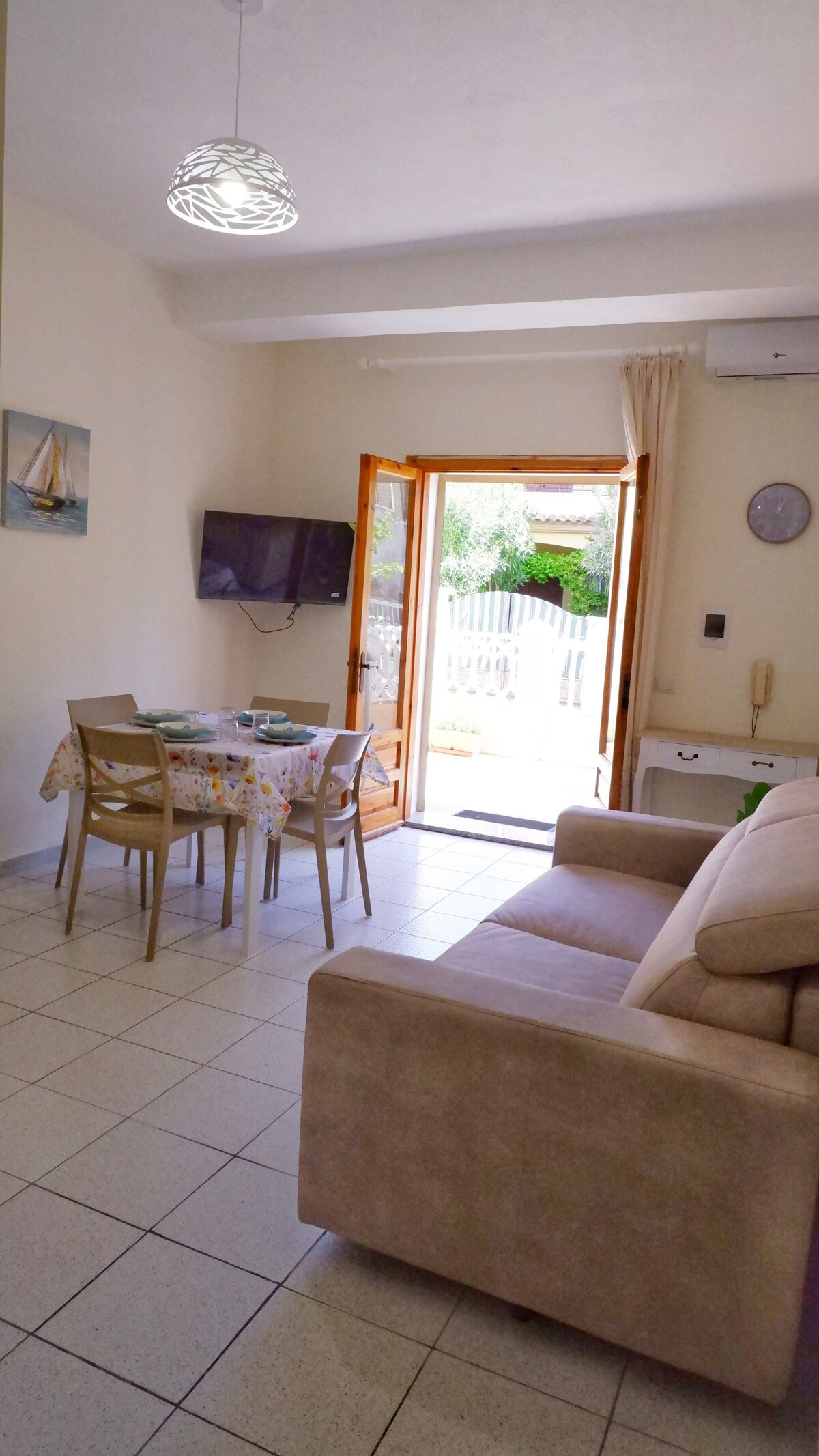 Appartamento nuovissimo e molto confortevole all'interno di un piccolo e riservato complesso residenziale. Si compone di una cucina open space provvista di tutti gli elettrodomestici principali, stoviglie, pentole e area relax. Sono presenti due camere, una con letto matrimoniale e l'altra con tre letti singoli ed infine un bagno con doccia. Una veranda e il giardino privato completano l'ambiente e rendono la proprietà il posto ideale per chi è alla ricerca di comfort e relax.