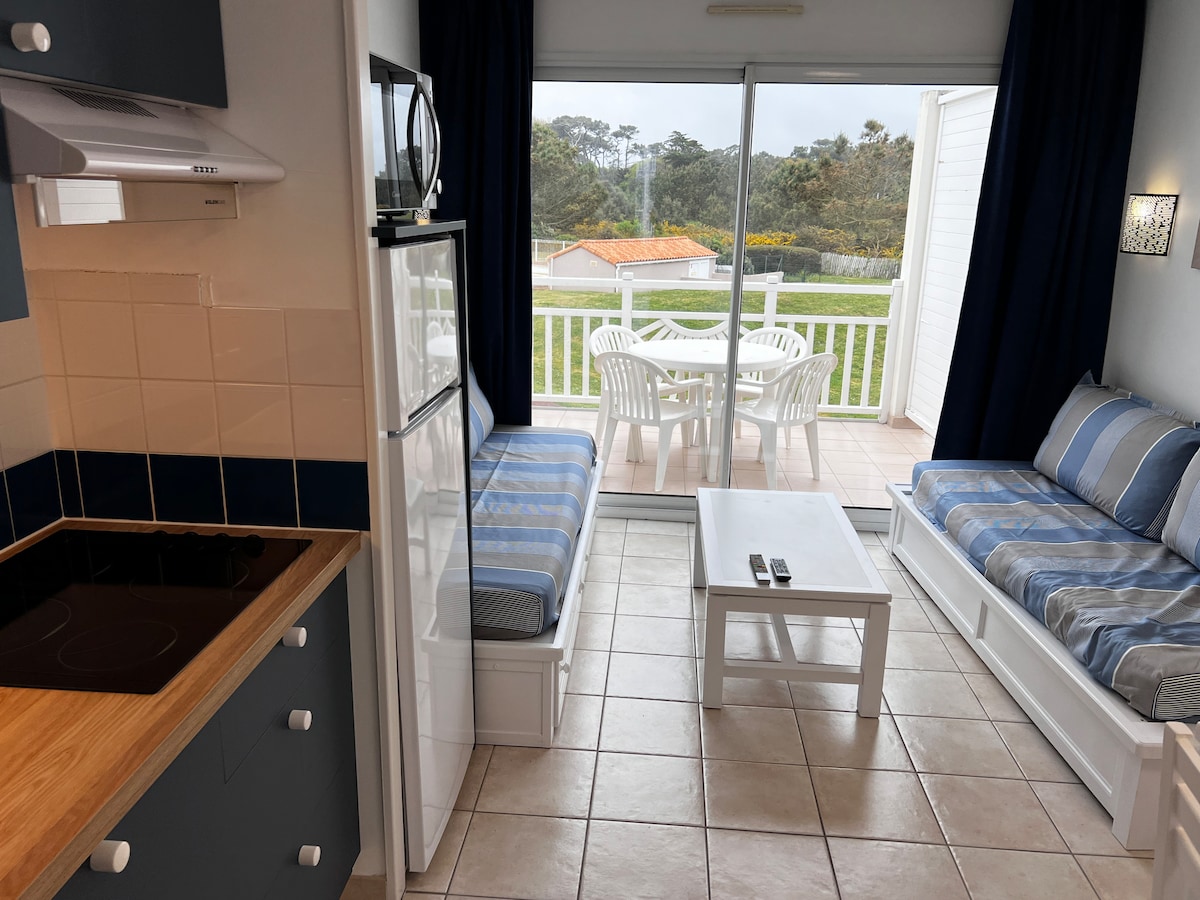 3/4 nəfərlik mənzil, qolf, şam ağacları və dənizə baxan terras. Ərazidə mövcud olan fəaliyyətlər: 27 aprel - 15 sentyabr: Mənzildə qolbaqlar olan əlçatan su sahəsi. İyul və avqust aylarında bazar ertəsindən cümə gününə qədər pulsuz akvagim dərsi. Əyləncə evinin qəbulunda tennis raketkaları və qolf klubunun pulsuz təminatı. Mürəkkəbdə iyul və avqust aylarında animasiyalar. Burgenay Limanı piyada 5mn. Le-Villon Çimərliyinə 15 dəq məsafədə