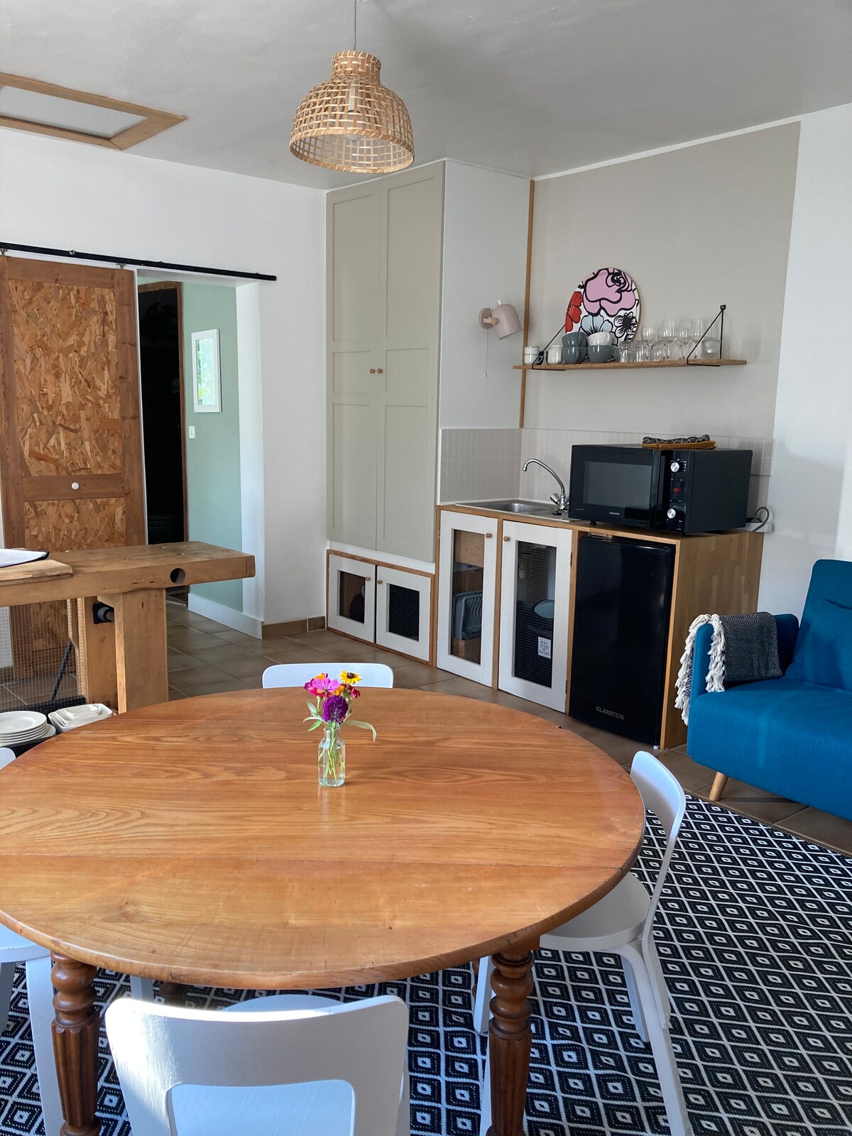 L'Eure de Pause 8 nəfəri yerləşdirə bilən lüks, tam təchiz olunmuş 80 m²-lik çardaq mənzildir. Pilləkənlərlə açıq mənzərəli böyük terrasa çıxan ayrıca giriş. Böyük yaşayış sahəsi. 2 ayrı yataq otağı var. Bir yataq otağında böyük bir çarpayı, digərində isə böyük bir çarpayı və 2 tək çarpayı var. Əlavə tualet var. Kiçik, sakit bir kənddə yerləşirik, buna görə də səs-küylü şənliklərə icazə verilmir. Ev heyvanlarımız var.