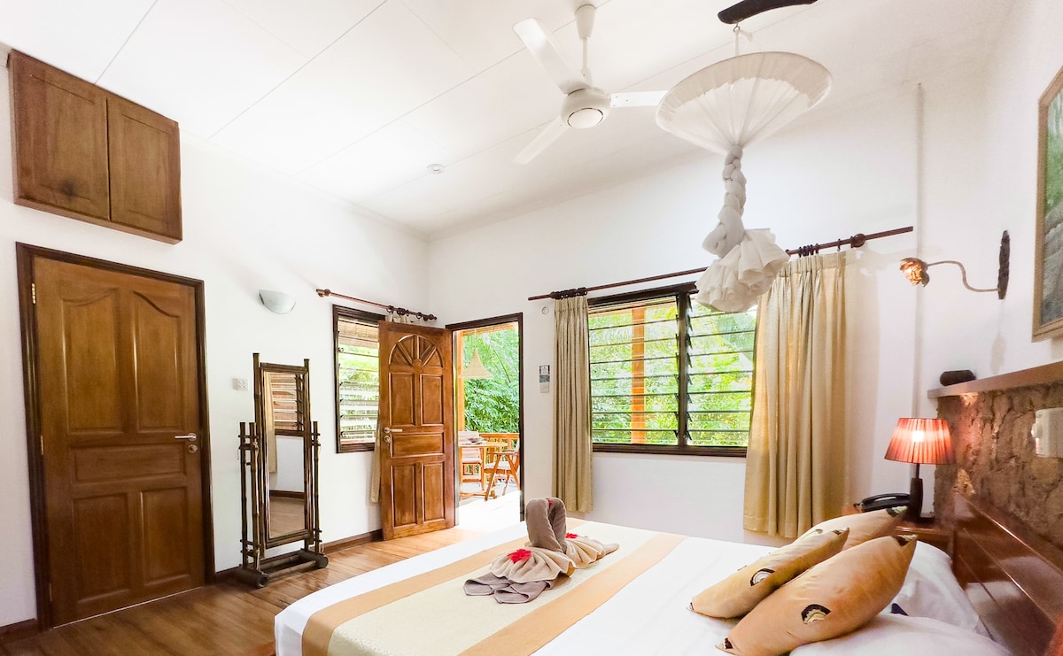 Welcome to the 'kannel' room, that offers everything you need for a comfortable stay at La Digue. A fully air conditioned room with an ensuite bathroom, a private kitchenette and terrace, surrounded by a peaceful garden. Villa Familia is located at the heart of the island, 200 meters from the port and all facilities, shops, restaurants, beaches and parks. We have free WiFi on site which works in all the rooms and in the garden.