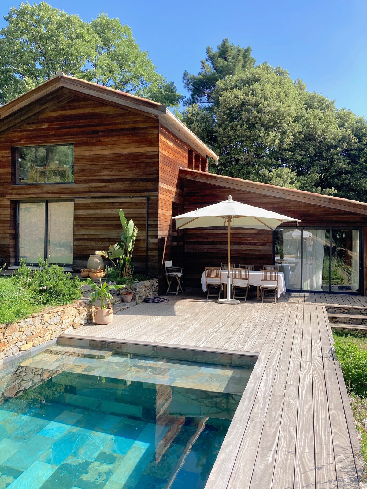 Mantar palıdlarının arasında yerləşən və kəndin gözoxşayan mənzərəsi olan villa. Parlaq və mehriban ümumi məkanlar, eləcə də yaxşı şirkətdə yemək üçün hovuzu, boulinq meydançası və terrası olan tətillər üçün nəzərdə tutulmuş eksteryerlər. Dizayner üslublu otaqların hamısı hamam otağı ilə birlikdə bütün kənd lüks tərəfini təmin edir. Pampelonna çimərliklərindən 35 dəqiqəlik məsafədə sakit olarkən St Tropez körfəzinin şən səs-küyündən zövq ala bilərsiniz.