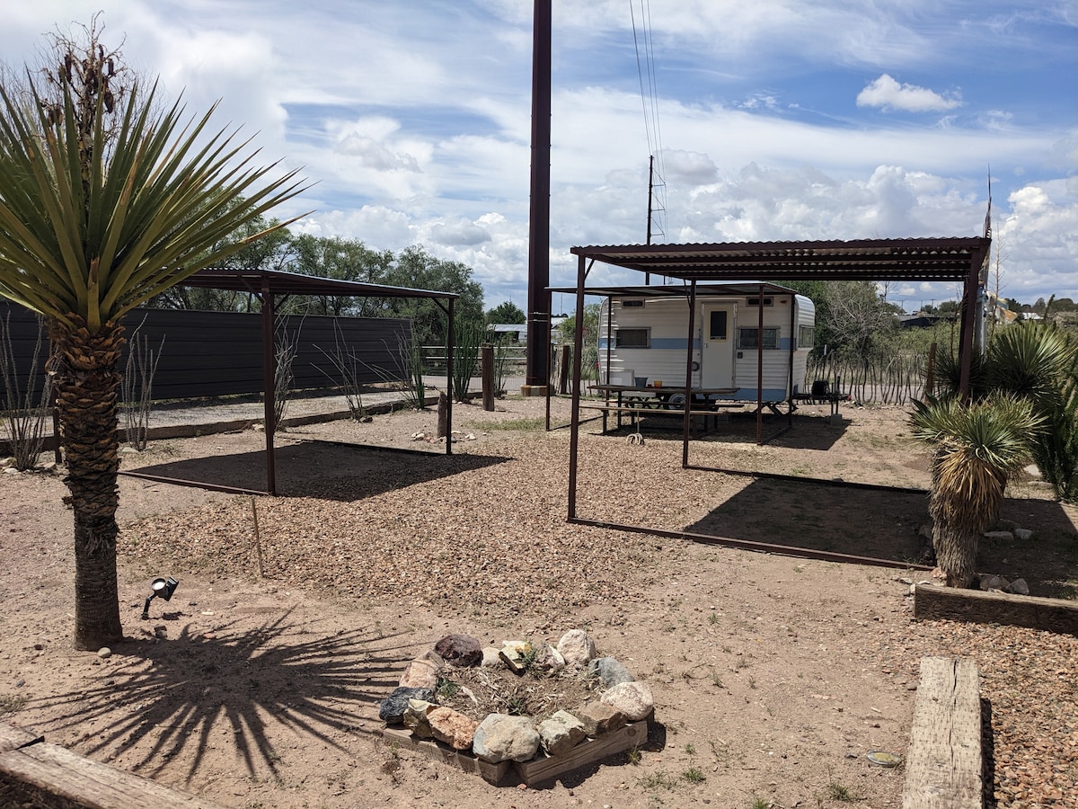 Barmen oynaya bilməyiniz üçün metal örtük, qamak və duş kabinəsi/ vanna otağı və gözəl açıq hava barı ilə əla yer. Kaminlər və bbq qril. Marfada həyəcan təbili çalın! Öz çadırınızı və düşərgənizi (müəyyən edilmiş ərazilər) gətirin. Duş - İsti Suyu olan Hamam Evi təklif edirik. Hər çadırda 1-2 nəfər. Şərqi Linkolndan (yarım mil) mərkəzi Marfa, Paisano Hotel və Qalereyalara asanlıqla gedin. Mürəkkəb son iki il ərzində hazırlanıb və bir partlayışdır . Ev heyvanları və ya yüksək şənliklər üçün üzr istəyirik. Ev heyvanlarına icazə verilmir, üzr istəyirik