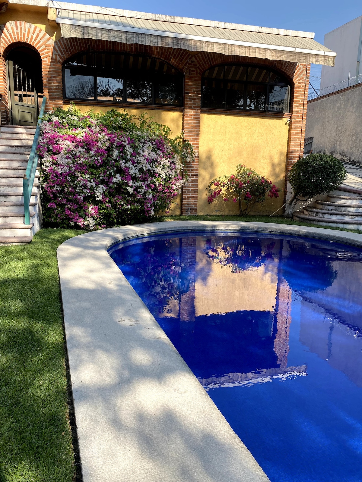 Gəlin və Cuernavakanın havasından zövq alın. Şəhər mərkəzindən cəmi 3 dəqiqəlik məsafədə, yaşayış zonasında yerləşən gözəl banqalo. Bu, evin olduğu əmlakın daxilində müstəqil banqalodur. Ümumi məkanlarda hovuz, xüsusi parkinq, yüksək sürətli WiFi və inanılmaz mənzərə var. Bağ və hovuz sahələri sizin və yoldaşlarınız üçün xüsusi, eksklüzivdir. Hovuzda qızdırıcı yoxdur. Bu məkan istirahət etmək üçün ayrıca, sakit məkan istəyənlər üçün əladır.