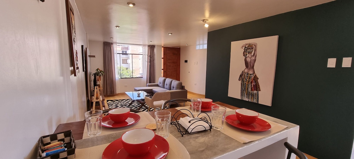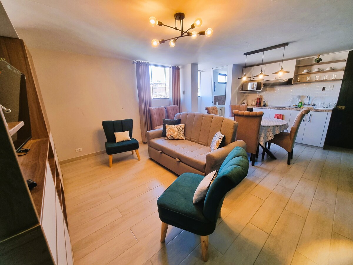 Máxima higiene en nuestro moderno departamento estudio de estreno a 5 minutos de la plaza de armas y de los Centros Comerciales. Implementado con todo lo necesario para vivir una confortable estadía en la mejor zona urbano residencial, céntrica y segura de Cajamarca. Agua caliente en todas las llaves, cocina totalmente equipada, todos los artefactos y utensilios requeridos, acceso a wifi de alta velocidad y tv de 55”.