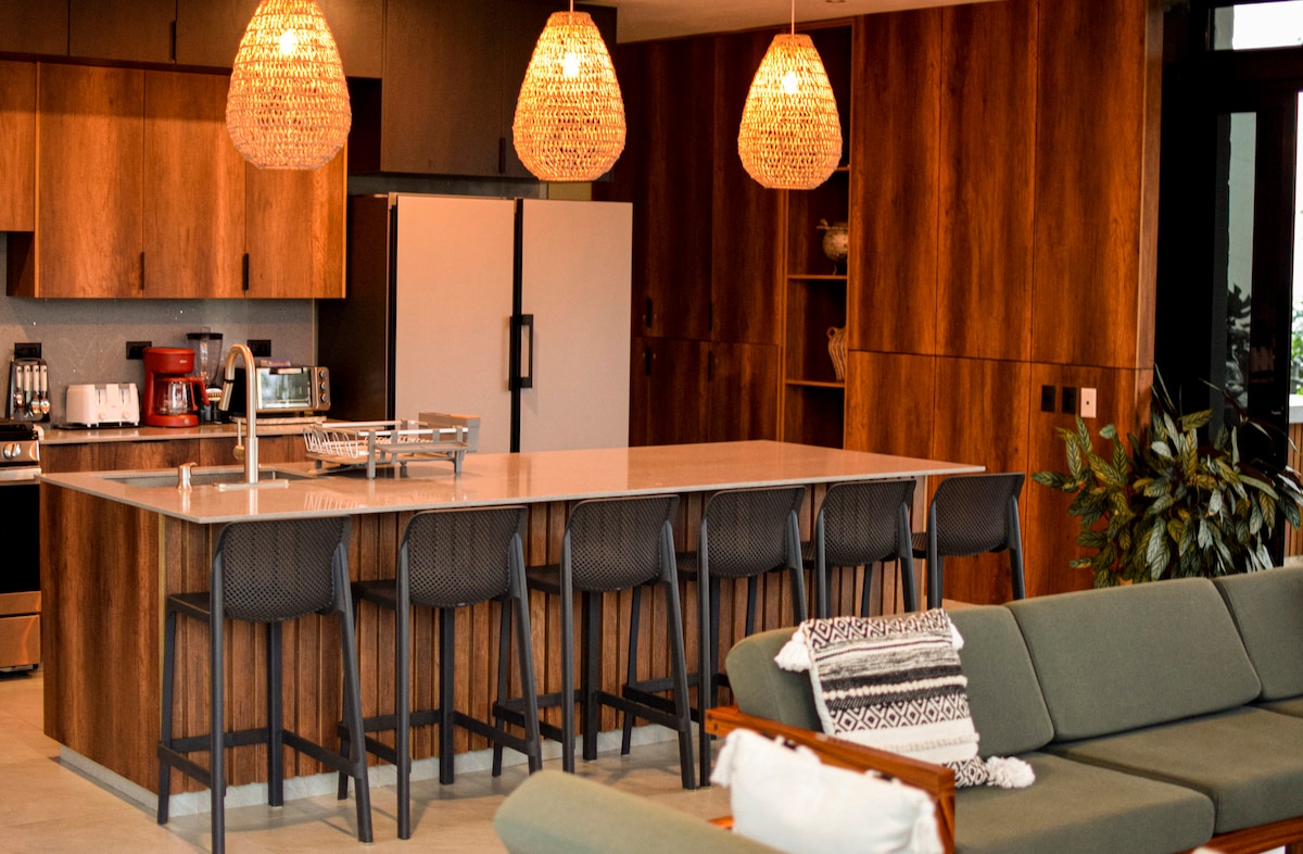 Gəlin və Tamanik meşəsində yerləşən minimalist üslublu dağ evimizdə dincəlin. Şəhərdən ayrılın və mənzərəli dağ yollarını araşdırmağa hazır olun və ya sadəcə rahat və zərif otaqlarımızda dincəlin. Ümid edirik ki, bu, səmimi və unudulmaz anlardan zövq almaq üçün şəxsi istirahət yeriniz olacaq. Buradan gözəl qürublara, El Peñón de Comasagua, okean və canlı Sörf Şəhərinin heyranedici mənzərələrinə heyran ola bilərsiniz.