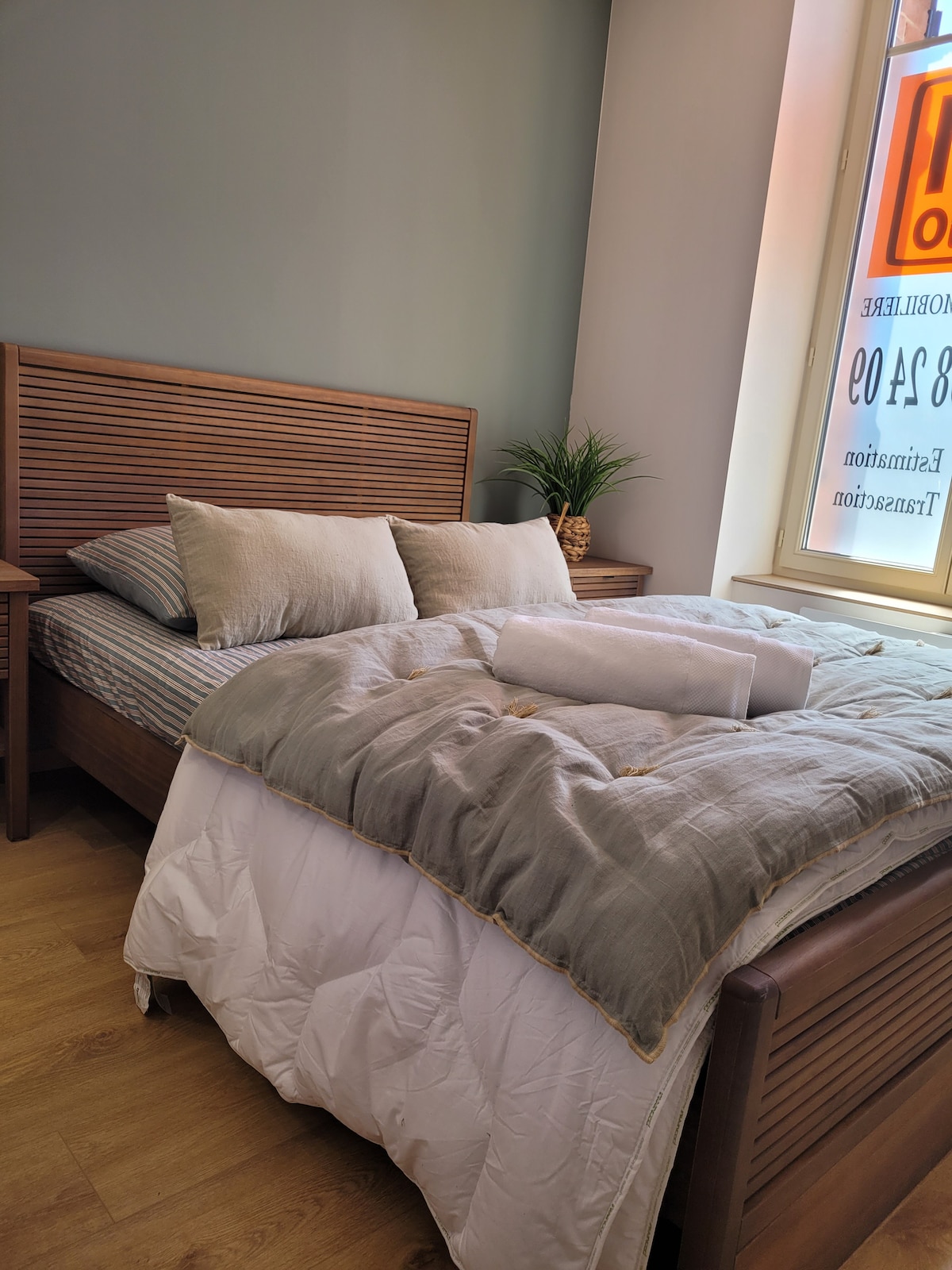 Bütün mağazalardan (tütün, mətbəə, supermarket, restoran və xəstəxana mərkəzi) piyada 3 dəqiqədən az məsafədə yerləşən bu gözəl tam təchiz olunmuş mənzildə regionumuzu və qastronomiyamızı gəlib kəşf edə biləcəksiniz. Təqdim edirik: - Qəhvə / Çay - Duz / istiot / yağ / sirkə - Bütün döşəkağı-dəsmal dəsti - Duş geli nümunələri - Təmizlik ləvazimatları - Camaşır yuyucu/ yumşaldıcı vasitə - Çətirli çarpayı, döşək, uşaq döşək örtüyü -Board oyunlar