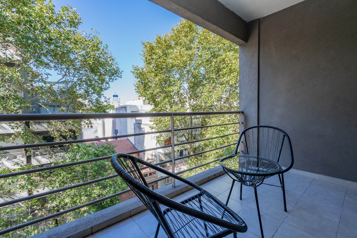 Bu geniş və sakit məkanda narahatlıqları unudun. 1 və ya 2 nəfərlik parlaq və müasir bir otaq. Palermo və Çakaritaya çox yaxın, barlar, restoranlar, çıxışlar sahəsi, supermarketlər və parkları olan çox sakit və yaşayış sahəsi olan Villa Crespo-da yerləşir. Bütün şəhər üçün bir neçə nəqliyyat vasitəsi ilə (metro xətti B, Metrobus və velosipedlər). Milonqas və tanqo akademiyalarına və Movistar Arenaya yaxındır.