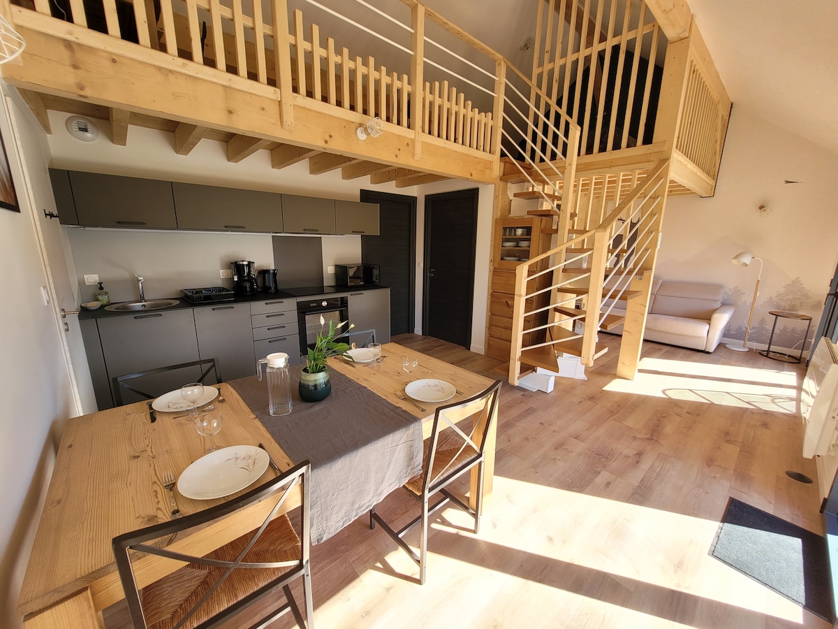 Yuxarı mərtəbələrdə yerləşən kottec yeni və çox rahat, təsnif edilmiş mebelli turist qonaqlamasıdır ***. ayrıca girişi var. Massif des Baugesin Unesco Geoparkının mərkəzində yerləşməsi batareyalarınızı enerji ilə doldurmaq və rahat dincəlmək, göllər və dağlar arasındakı bölgəyə səfər etmək, eləcə də gəzinti, xizək sürmək, velosiped sürmək üçün idealdır.