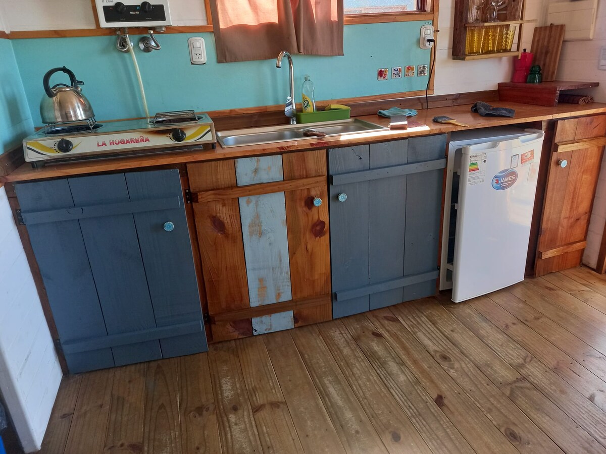 La Paloma çimərliklərindən bir neçə dəqiqəlik məsafədə 🌿 rahat və funksional taxta kottec. Təbiət qoynunda dincəlmək, əlaqəni kəsmək və ya işləmək üçün idealdır. Tam mətbəx, ayrıca hamam otağı, Wi-Fi, ventilyator, paltaryuyan maşın, döşəkağılar, dəsmallar, çimərlik stulları və çətirlə təchiz olunub. Sürüşkən çarpayı məkandan maksimum yararlanmağınıza imkan verir. Həmçinin kürklü dostlarınızı salamlayırıq! Cütlüklər və ya tək səfərlər üçün mükəmməldir. Əmlak tamamilə hasarlanıb və gecə yolu işıqlandırılır