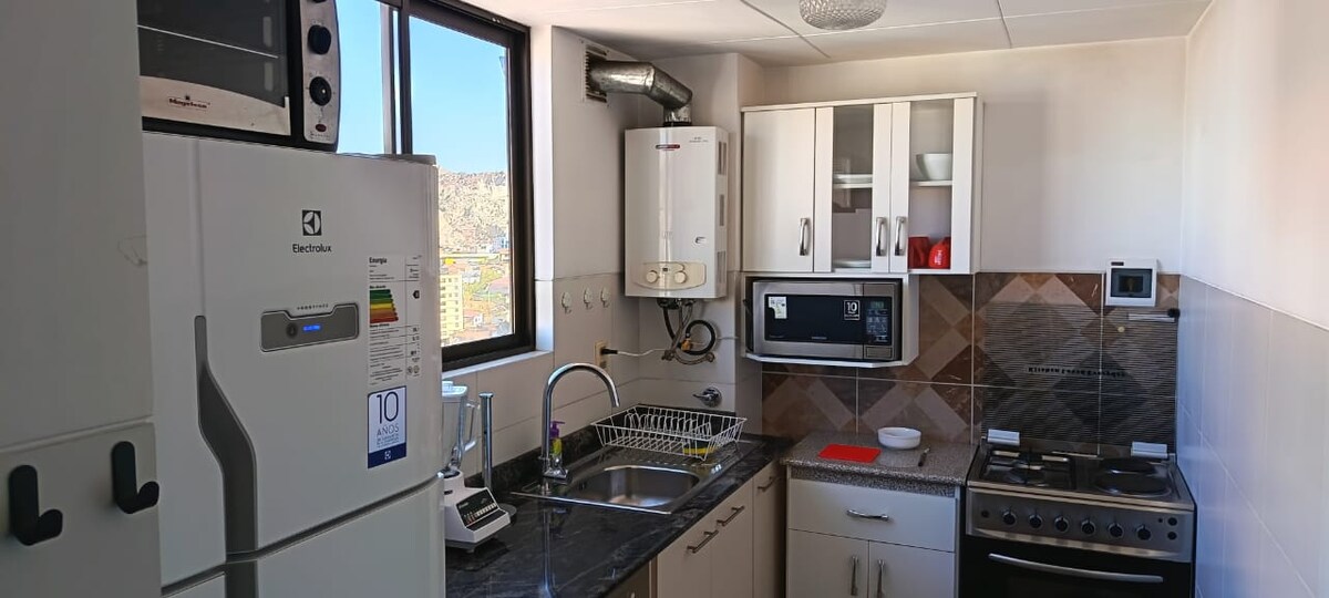Welcome to Illimani’s Studio! Perched on the 15th floor in the heart of La Paz, this warm and elegant studio offers breathtaking views of the city and the iconic Illimani. Its prime central location puts you just moments from cable car lines, top viewpoints, cafés, restaurants, cinemas, and major tourist attractions—everything you need for a comfortable, convenient, safe, and memorable stay in one of the city’s best areas.