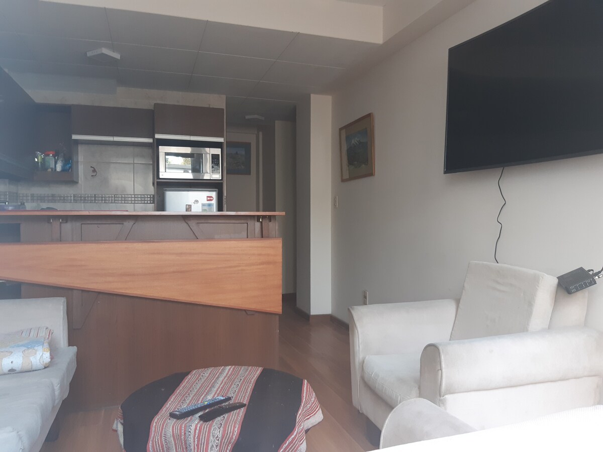 Sizi hər cür milli və beynəlxalq kulinariya təcrübələri təklif edən restoranlarla əhatə olunmuş sakit istirahət məkanı olan San Migelin mərkəzindəki mənzilimizdə qarşılamaqdan məmnun olarıq. Tətil və ya işgüzar qonaqlama üçün idealdır. 100 kvadratmetrlik bu mənzildə iki yataq otağı və iki hamam otağı var. Mənzil çox istidir, bu isə soyuq iqlimli şəhər olan La-Pasda çox vacibdir.