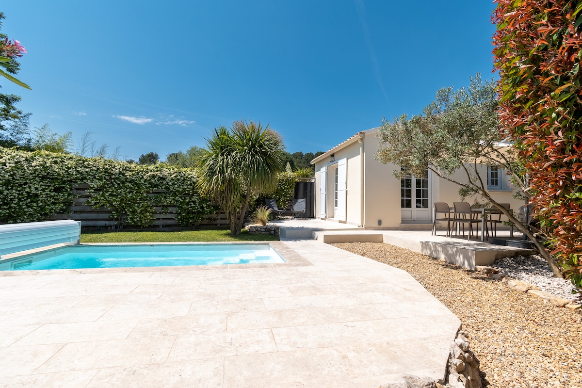 Find the best booking conditions on the link on 2nd picture ❤️ Villa fully renovated in 2025 ! Bright, luxury appointments and very comfortable, you will enjoy a peaceful setting close to all amenities between Aix-en-Provence & Marseille. Air conditionner in the living room and in the bedroom. TV, fiber internet. Bed 180/200 shape memory Tempur The accommodation, garden & the swimming pool are PRIVATE and can be heated with 100€ extra Welcome book is provided with many visits/food advises