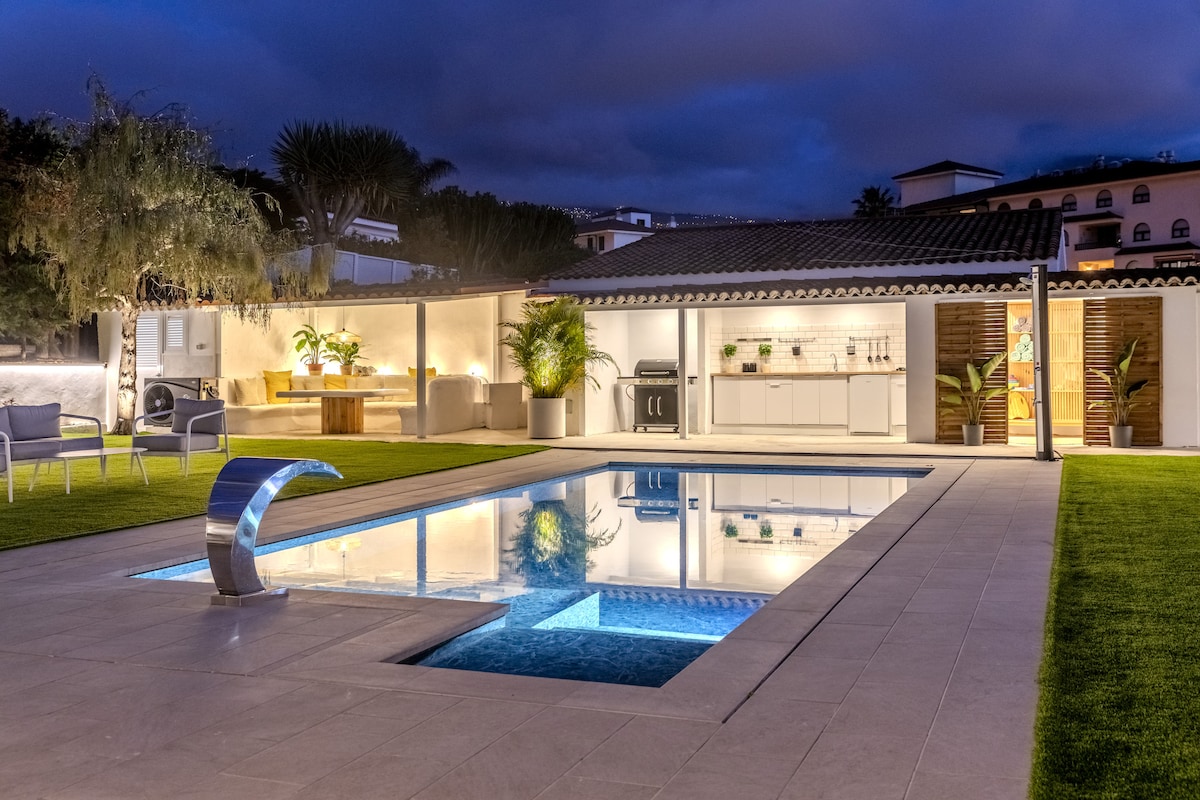 Chalet independiente en zona residencial muy tranquila. Entrada privada. A 100 mtrs del mar.Piscina privada de uso exclusivo, climatizada (24°/32° todo el año ,la temperatura depende del mes) La piscina puede quedar totalmente aislada de los niños. WIFI ***** ideal para teletrabajo. Barbacoa, televisor 3d , colección de 800 dvds y blurays, Wii . Rodeado de terraza solarium ( zona soleada todo el dia) y zona chillout .Ideal para familias y turismo relax. NO ESTAN PERMITIDAS LAS FIESTAS !!!