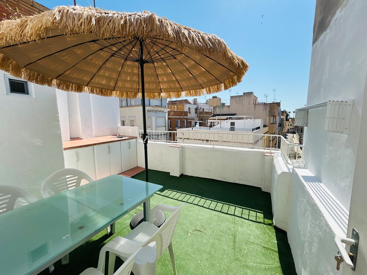Deltanın temalı okean 🌊 və ⛰ dağa inanılmaz mənzərəsi olan, möhtəşəm eksklüziv istifadə üçün soyunub-geyinmə 🌅 terrası, 70 m2, SPA, yuvarlaq Bali çarpayısı, dizayner arxa işıqlı divanlar, dalğalı Trabukador freskaları və kaytsörfinq, rəngli LED ilə dolayı işıqlandırma, qonaq otağının terrasında gecə və gündüzdən zövq almaq üçün ağıllı dinamik, qonaq otağının terrasında barbekü olan dizayner penthausu. Dənizdən 350 m məsafədə. Descbre la magia del Delta del Ebro en el Ambiente más Chill