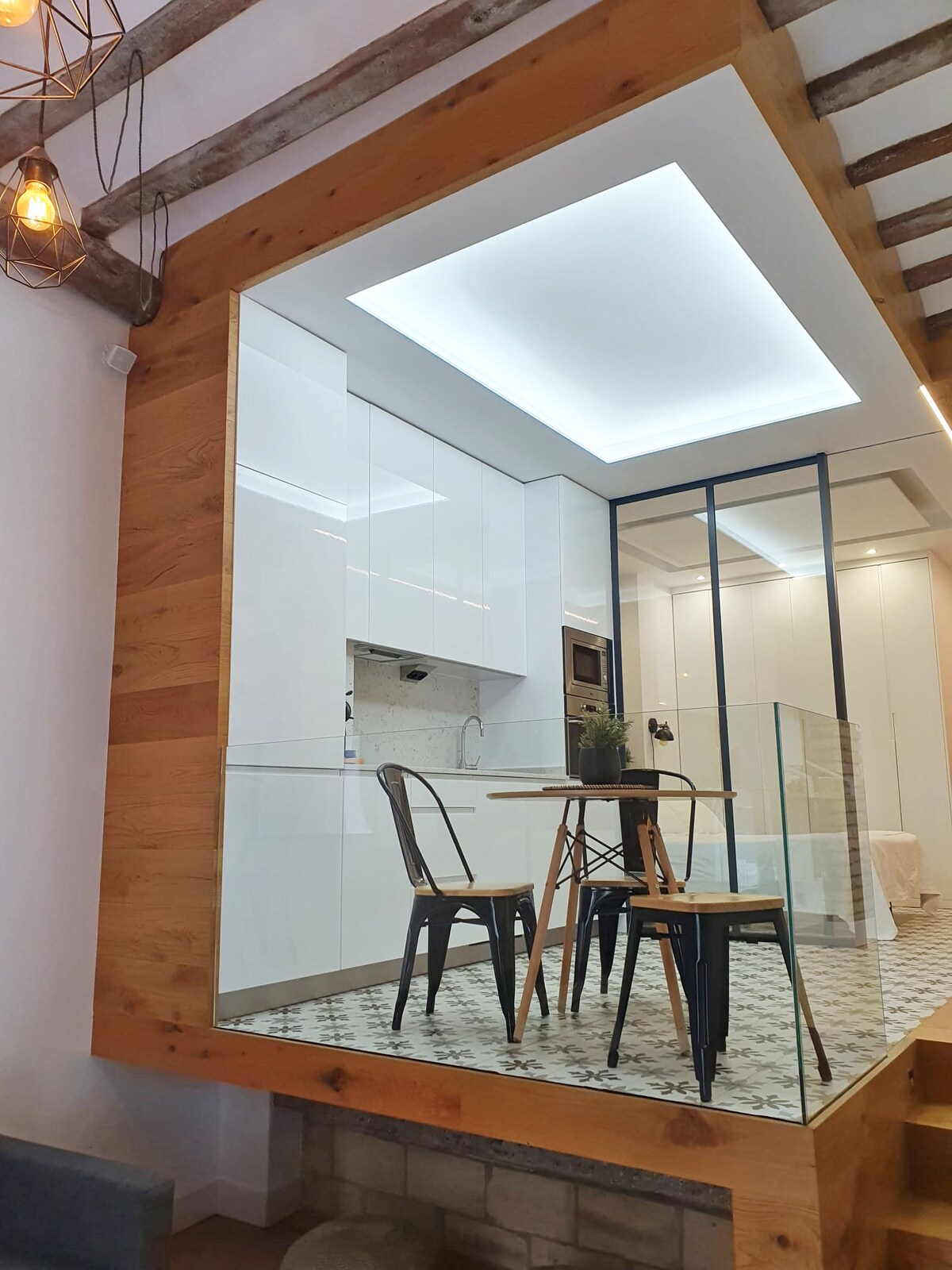 VT-LR-458. EL Secreto DE Portalları Logroño şəhərinin tarixi mərkəzində piyada küçəsində yerləşən füsunkar loftdur. O, Concatedral de La Redonda-ya baxan böyük bərpa edilmiş pəncərədən işıqlandırılan diafanoz məkan kimi dizayn edilib. Logroño şəhərinin tarixi mərkəzinin gözəlliyindən zövq alın və bütün görməli yerləri piyada kəşf edin. Cütlüklər və ya kiçik ailələr üçün ideal olan bu məkan özünüzü evinizdəki kimi hiss edəcəyiniz çox rahat və füsunkar bir məkandır.