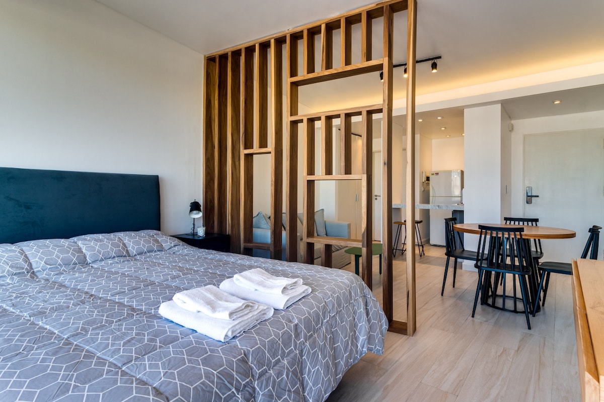 Gözəl Studiya, Palermonun ən yaxşı zonasında çox parlaq və sakitdir. Müstəsna qonaqlama üçün hazırdır. Ən yaxşı restoranlar və Palermonun gözəl parkları olan Los Arcos Ticarət Mərkəzindən bir neçə metr məsafədə. Tam təchiz olunmuş, yüksək sürətli WiFi, Smart TV 50" 4k", kreslo və tam mətbəx (mikrodalğalı soba, anafe, soba, toster, Nespresso, qab-qacaq) var. Buenos-Ayresə baş çəkmək və Palermonun ən yaxşı ərazisindən tanış olmaq istəyənlər üçün idealdır.