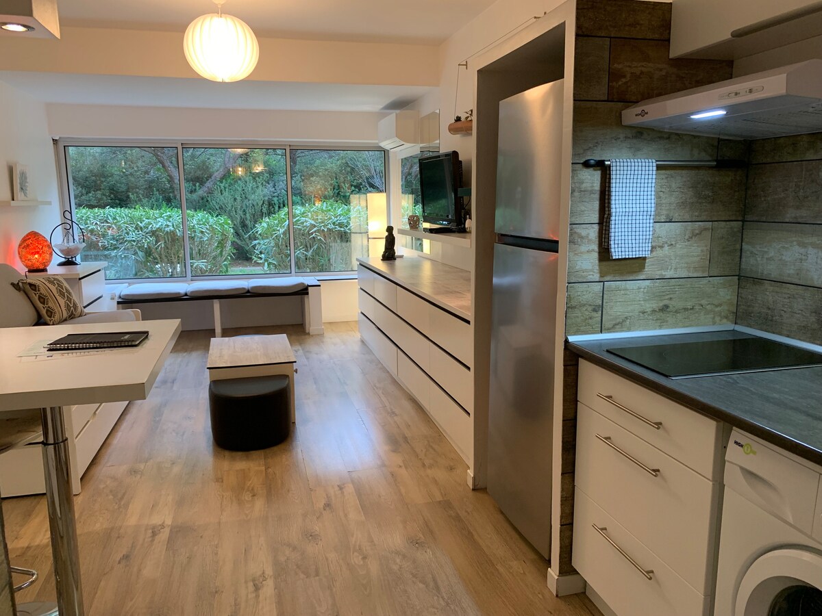 Bağçanın kənarındakı şam meşəsinə və dəniz mənzərəsinə baxan çox rahat, 26 m2-lik bağ və terrası olan 27 m2-lik müasir kondisionerli studiya, çimərlik yolu keçmədən 50 m məsafədədir, bu da Cap Nègre boyunca sahil yolunun kürəklərinə giriş imkanı verir. Qapalı yaşayış yerində ayrıca sahəsi olan parkinq. Ön qapı: 5 nöqtə təhlükəsiz möhkəmləndirmə.