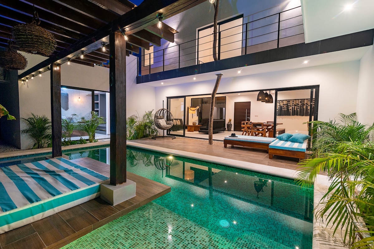 Art beneath 4 walls, but there are no limits within our new 1 BR luxury villa. As part of one of the neighborhood's most luxurious and photo-worthy condos, our 1 bedroom apartment features: ☆ a private terrace featuring a jacuzzi complete with a puff sofa and bridge entrance. ☆ State of the Art boho-Chic decor. ☆ Access to one of Tulum's best condo's amenities, including fully equipped and air-conditioned gym, 2 pools, spa room and co-working rooms. Keep on reading for the full list!