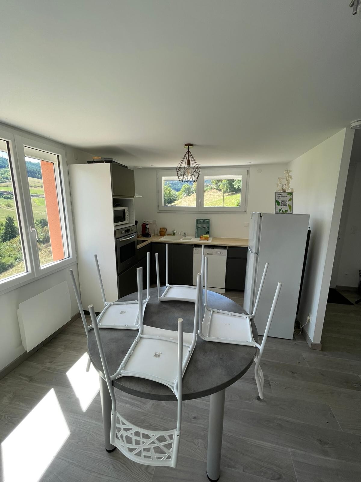 Kənd mərkəzində sizi 75m2-lik 3 səviyyədə olan bu isti evdə qarşılamağı təklif edirik. Onlardan 55m2 kirayə üçün istifadə edilə bilər (bəzi otaqlar ayrıca qalır). Bura birinci mərtəbədə təchiz olunmuş mətbəxi (soyuducu, avara, mikrodalğalı soba, qəhvə maşını, çaydan...) və qonaq otağı olan qonaq otağı daxildir. 1-ci mərtəbədə tualet, vanna və vannası olan tualet sahəsi görəcəksiniz. 2-ci mərtəbədə iməkləyən yataq otağı və onun paltardəyişmə otağı.