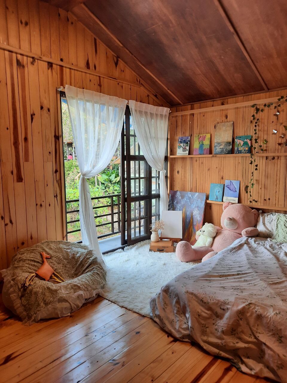 Bu rahat taxta kabinə Dalat Sentyabr Bağının bir hissəsidir – qəhvə ağacları və çiçəkləri arasında yerləşən rahat bir ev. Məkan istilik və sakitlik təmin etmək üçün təbii taxta və sadə toxunuşlarla dizayn edilib. Sakit, təbiətlə dolu tətil axtaran cütlüklər, dostlar və ya tək səyahətçilər üçün idealdır.