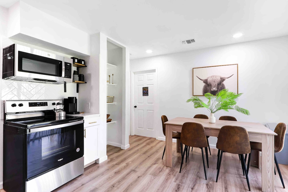 ★MARAQLI TƏKLİF VƏ YENİ EV★ Bu, zövq almağınız üçün gözəl yeni evdir. Böyük arxa həyəti və Texas qürubunun heyrətamiz mənzərəsi olan 3 yataq otağımız və 2 hamamımız var. Ev kifayət qədər sahəsi olan üç böyük yataq otağı, rahat çarpayılar, sürətli Wi-Fi, böyük şkaflar, adapterlər və tətiliniz üçün lazım ola biləcək bütün imkanlar təklif edir. Əmlakın olduqca təmiz, yaxşı təchiz olunmuş və hər şeydən əvvəl son dərəcə rahat olduğunu görəcəksiniz. Şəhərə bir gecə qalmaq və ya qalmaq istəməyinizdən asılı olmayaraq.