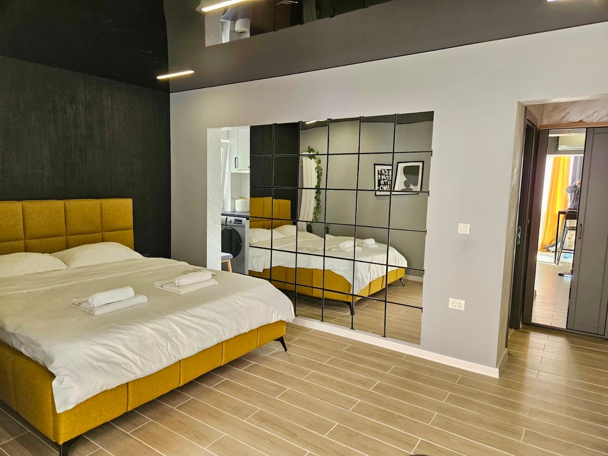Studio dodat cu aer conditionat ,TV,Wi-Fi gratuit,bucatarie complet utilata in zona linistita,la artera principala,foarte aproape de centrele comerciale. Self Check in ,Check out